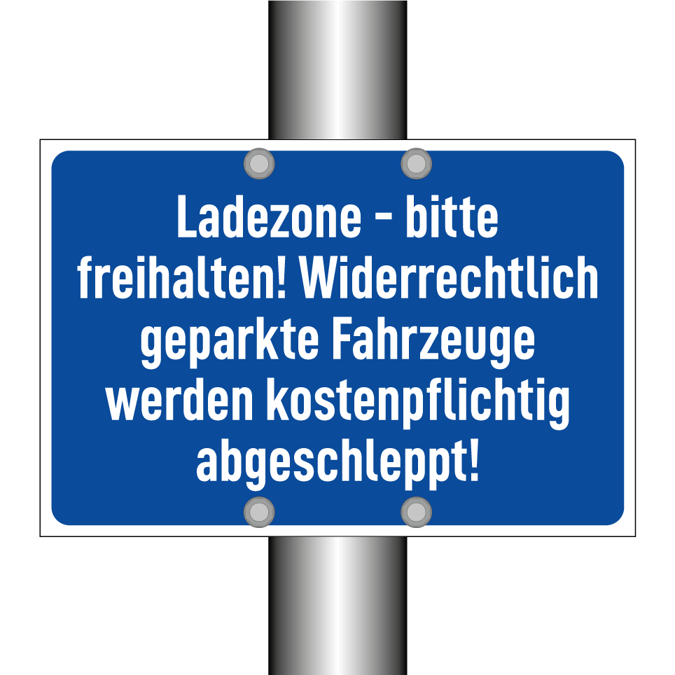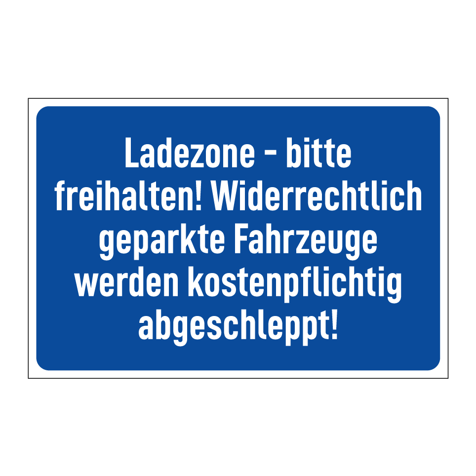 Ladezone - bitte freihalten! Widerrechtlich geparkte Fahrzeuge werden kostenpflichtig abgeschleppt!