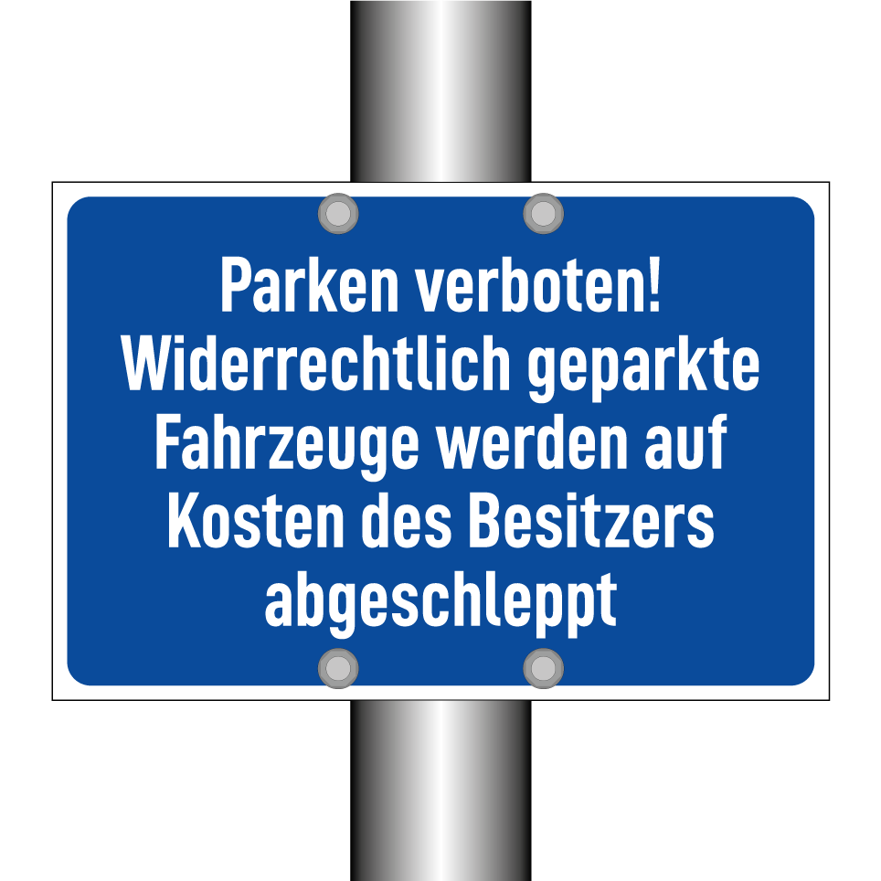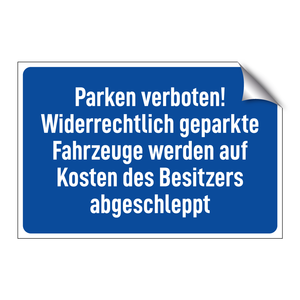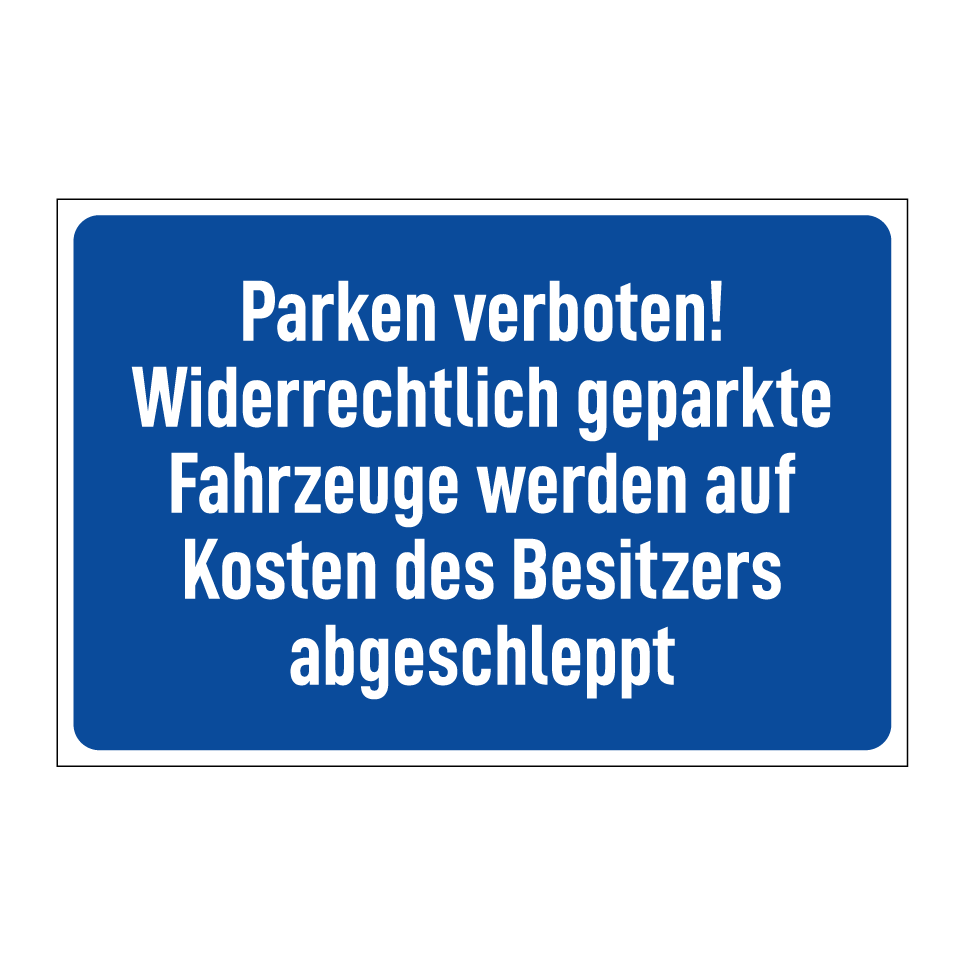 Parken verboten! Widerrechtlich geparkte Fahrzeuge werden auf Kosten des Besitzers abgeschleppt