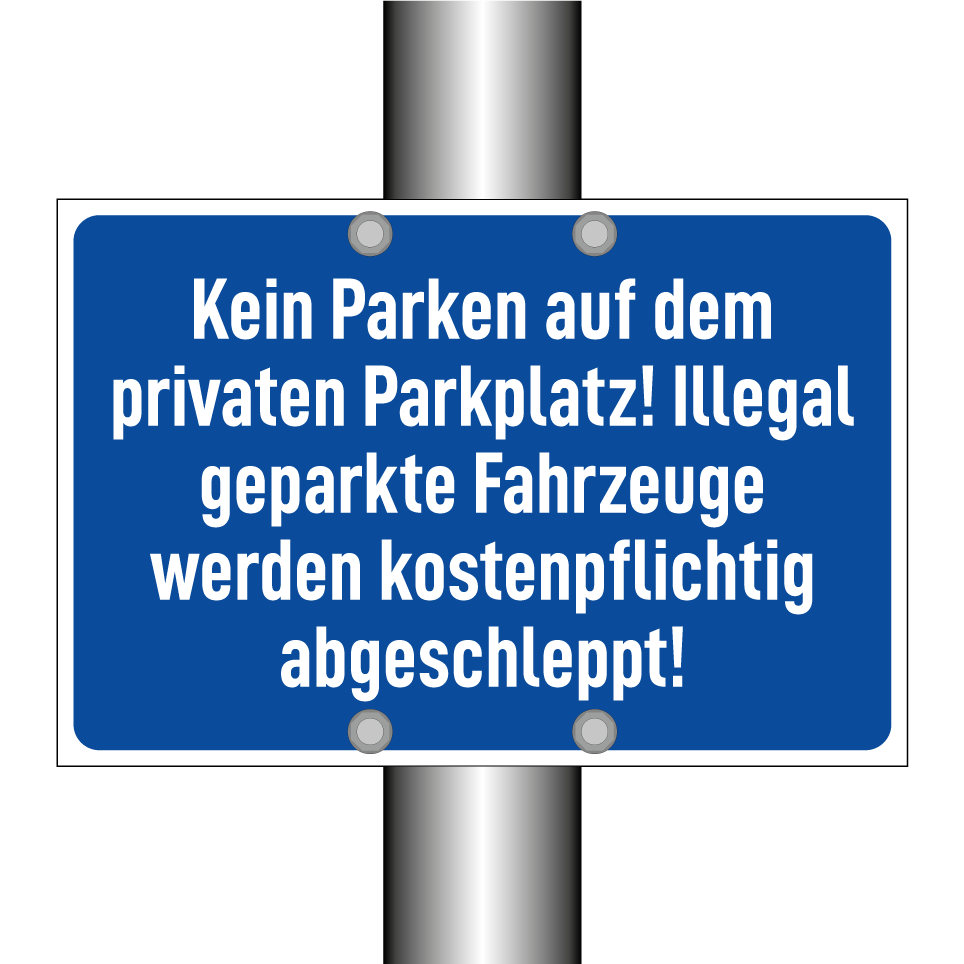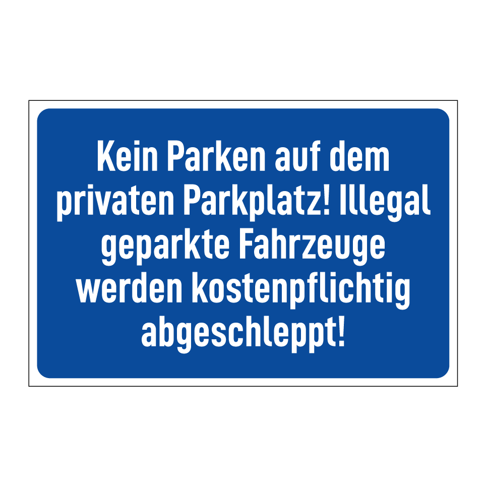 Kein Parken auf dem privaten Parkplatz! Illegal geparkte Fahrzeuge werden kostenpflichtig abgeschleppt!