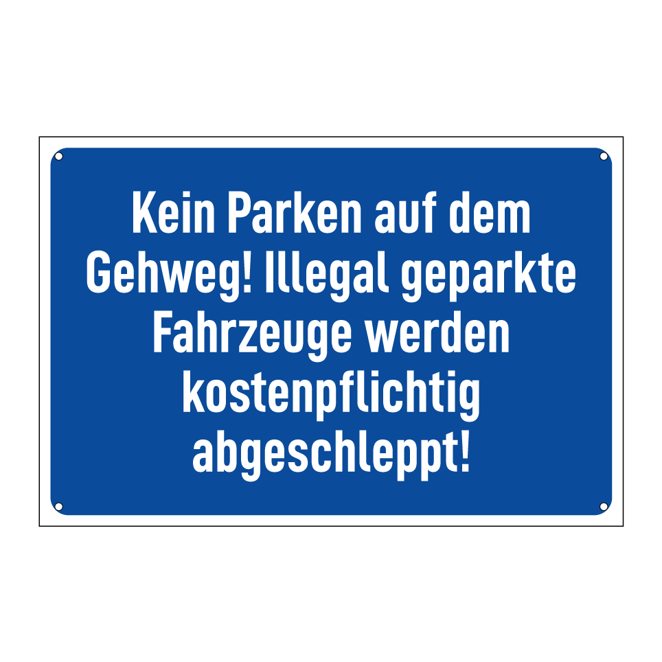 Kein Parken auf dem Gehweg! Illegal geparkte Fahrzeuge werden kostenpflichtig abgeschleppt!