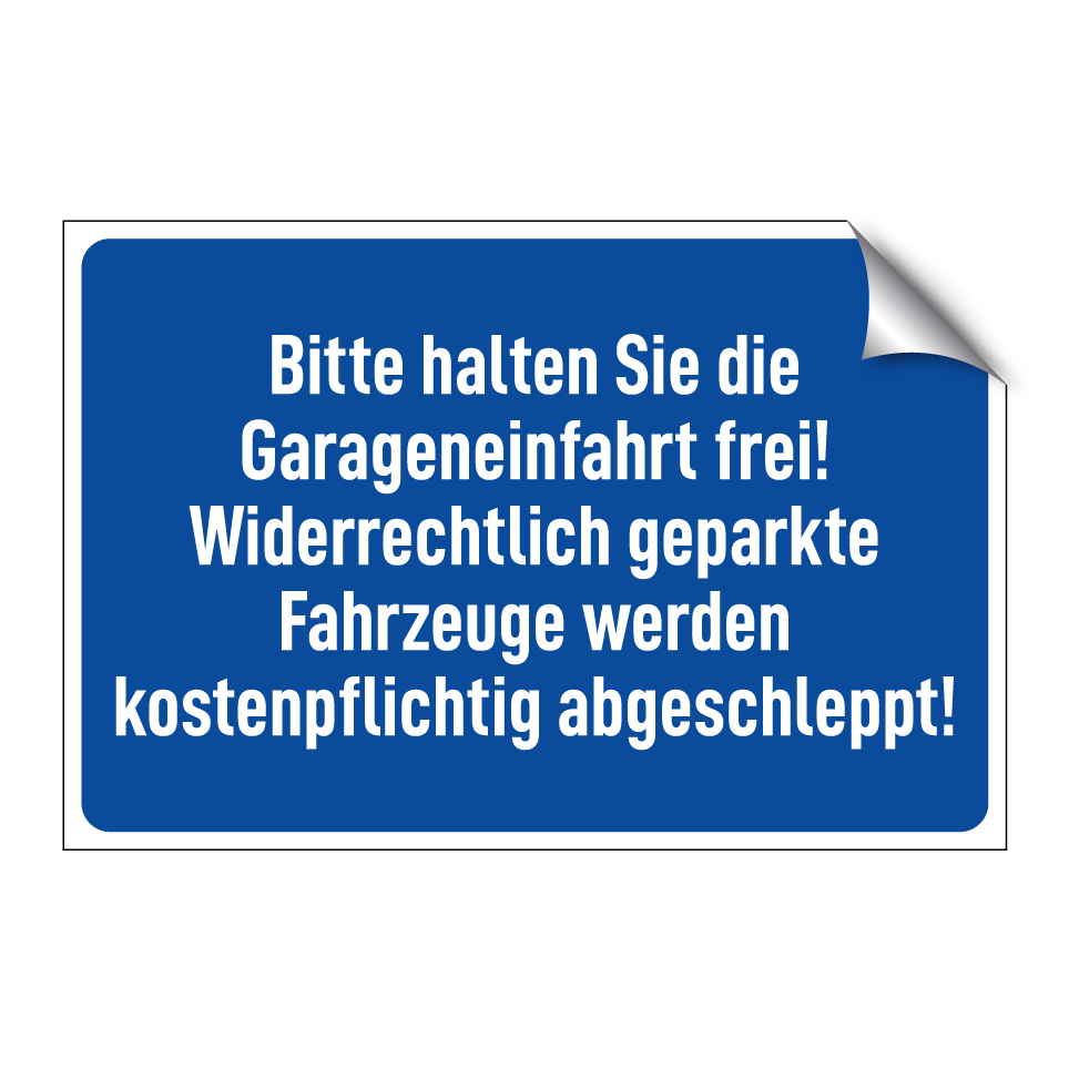 Op de categoriepagina's hieronder vindt u meer producten die lijken op Bitte halten Sie die Garageneinfahrt frei! Widerrechtlich geparkte Fahrzeuge werden kostenpflichtig abgeschleppt!. Klik hieronder om meer producten te ontdekken.