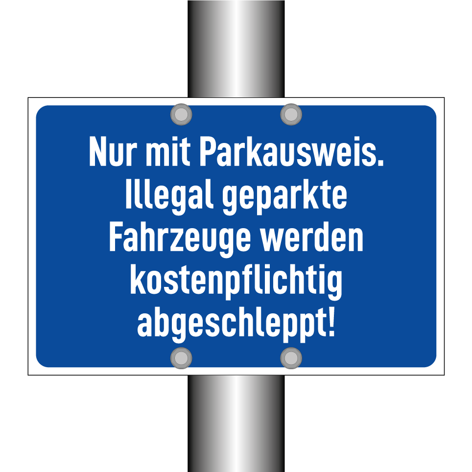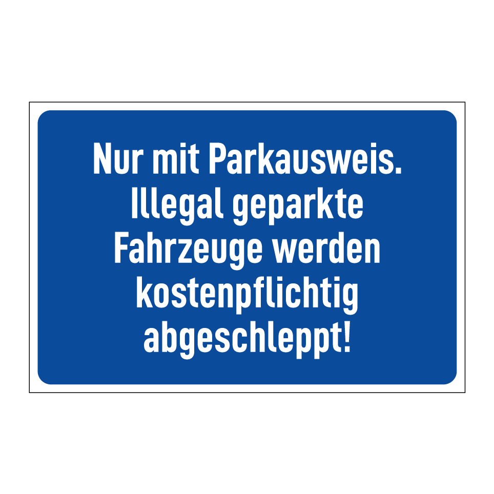 Nur mit Parkausweis. Illegal geparkte Fahrzeuge werden kostenpflichtig abgeschleppt!