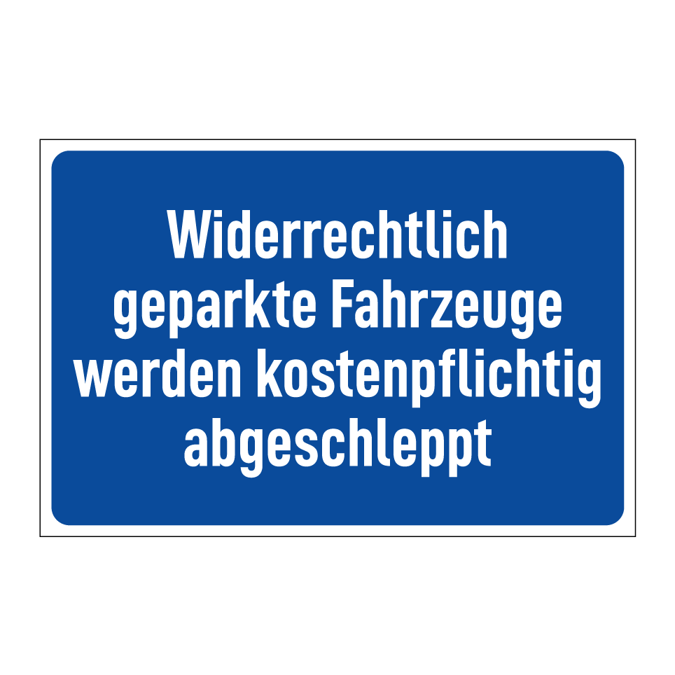 Widerrechtlich geparkte Fahrzeuge werden kostenpflichtig abgeschleppt