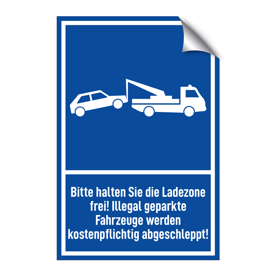 Bitte halten Sie die Ladezone frei! Illegal geparkte Fahrzeuge werden kostenpflichtig abgeschleppt!