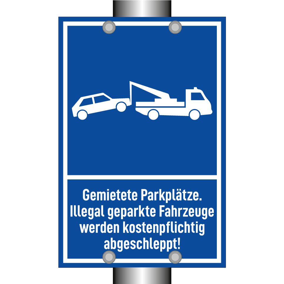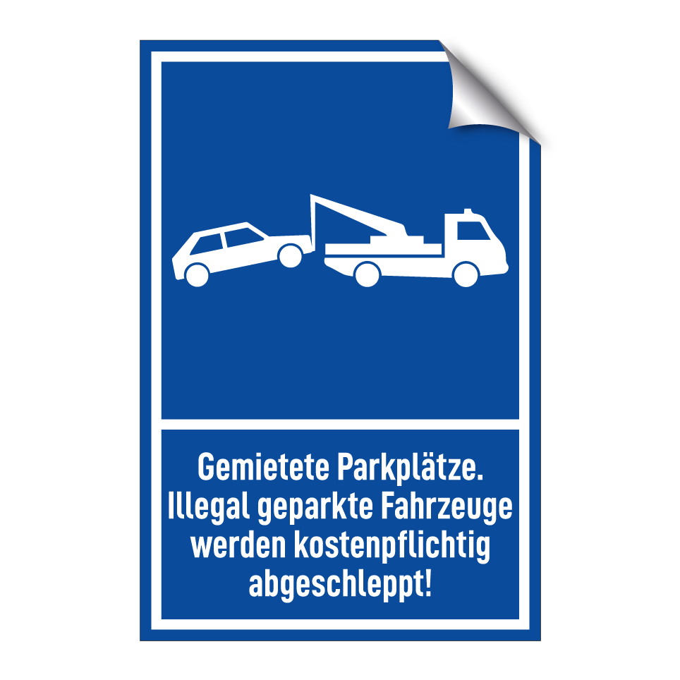 Gemietete Parkplätze. Illegal geparkte Fahrzeuge werden kostenpflichtig abgeschleppt!
