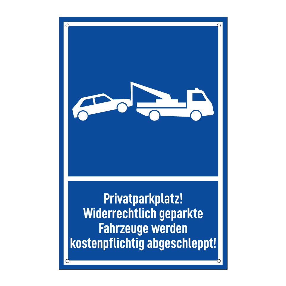 Privatparkplatz! Widerrechtlich geparkte Fahrzeuge werden kostenpflichtig abgeschleppt!