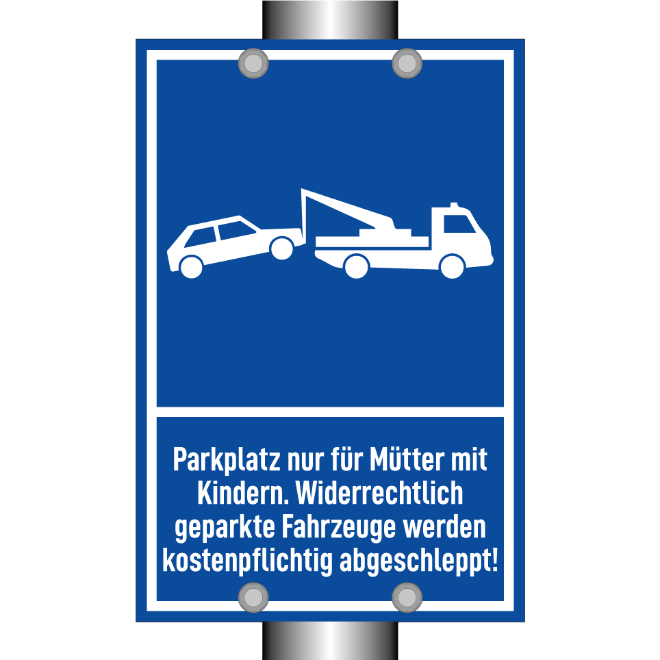 Parkplatz nur für Mütter mit Kindern. Widerrechtlich geparkte Fahrzeuge werden kostenpflichtig abgeschleppt!