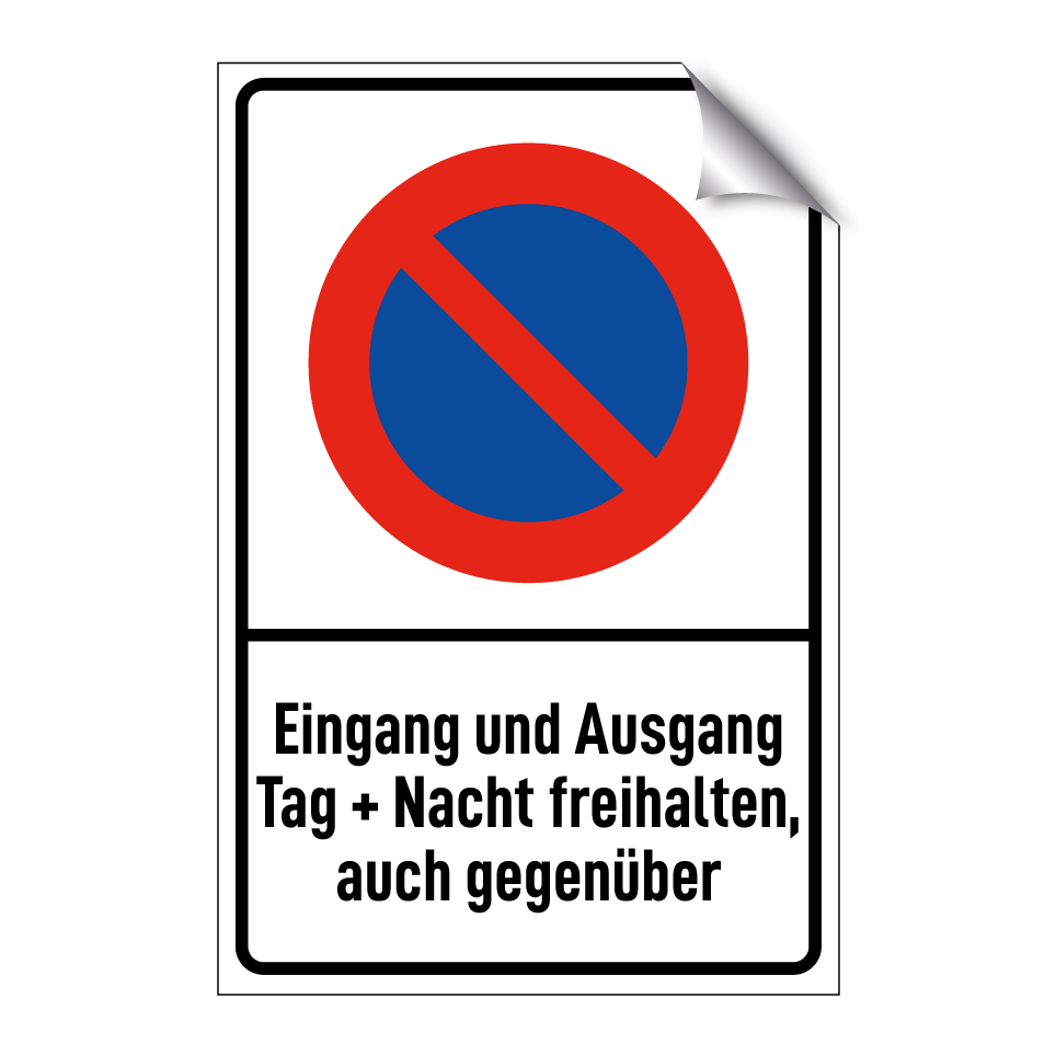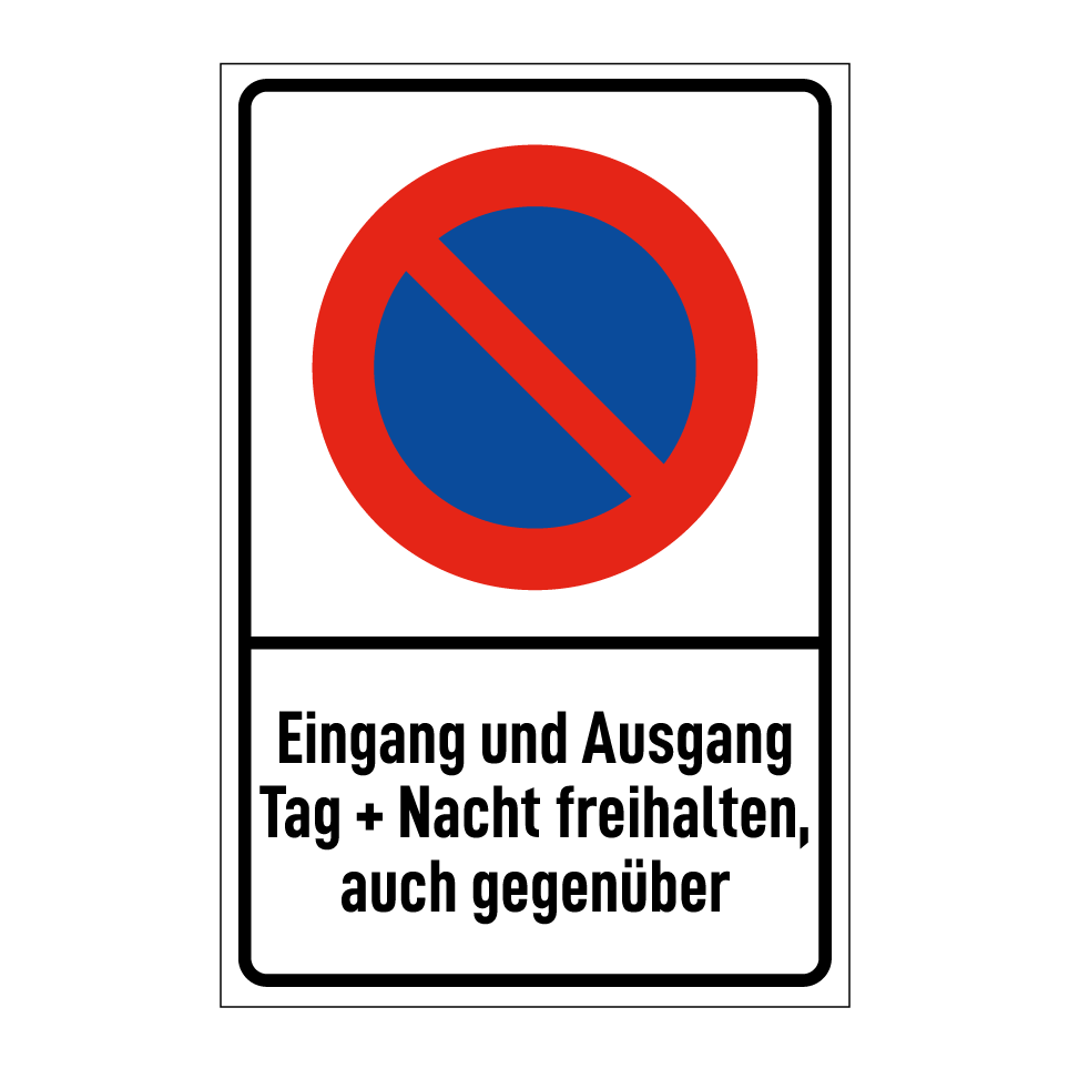 Eingang und Ausgang Tag + Nacht freihalten, auch gegenüber