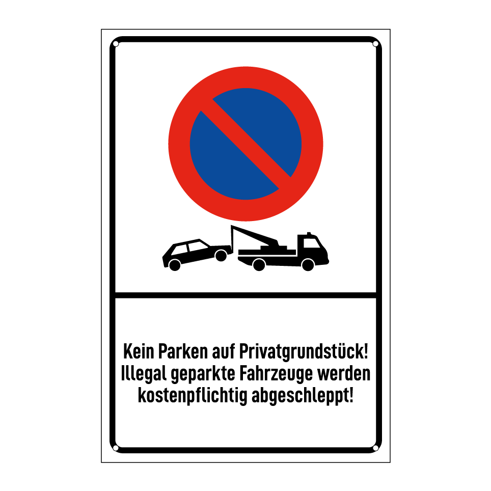 Kein Parken auf Privatgrundstück! Illegal geparkte Fahrzeuge werden kostenpflichtig abgeschleppt!