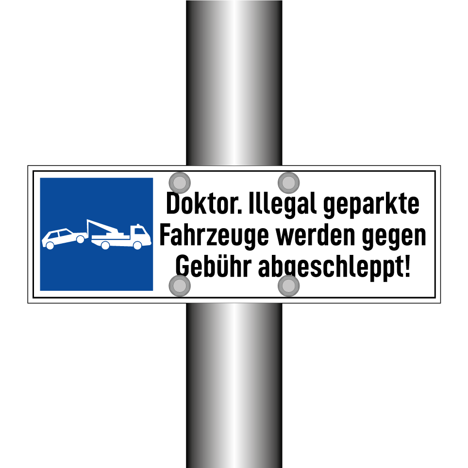 Doktor. Illegal geparkte Fahrzeuge werden gegen Gebühr abgeschleppt!
