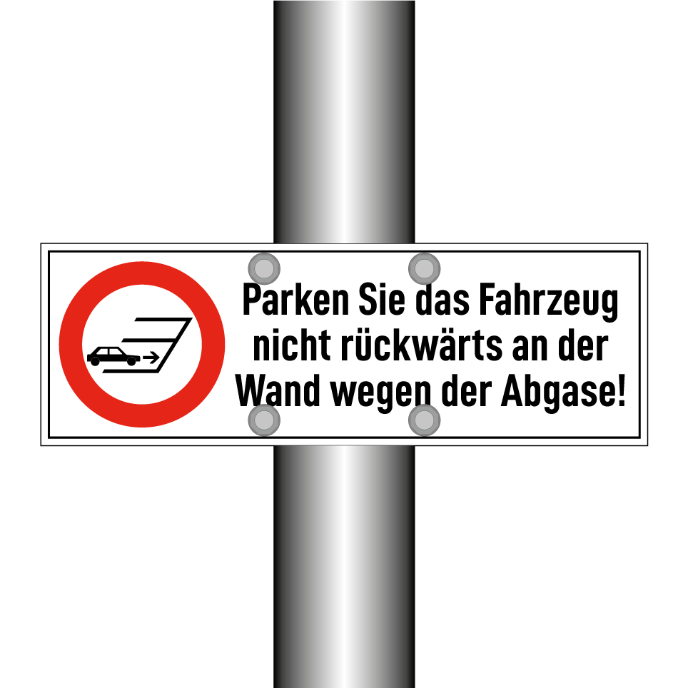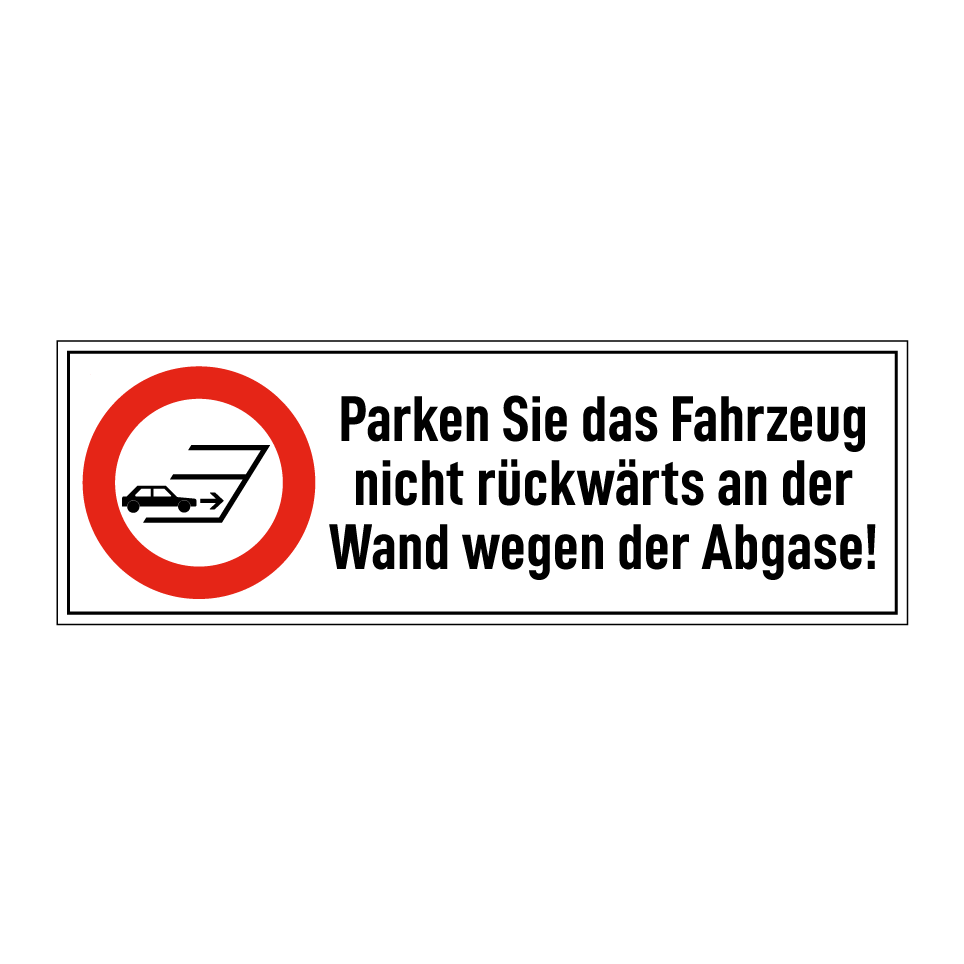 Parken Sie das Fahrzeug nicht rückwärts an der Wand wegen der Abgase!