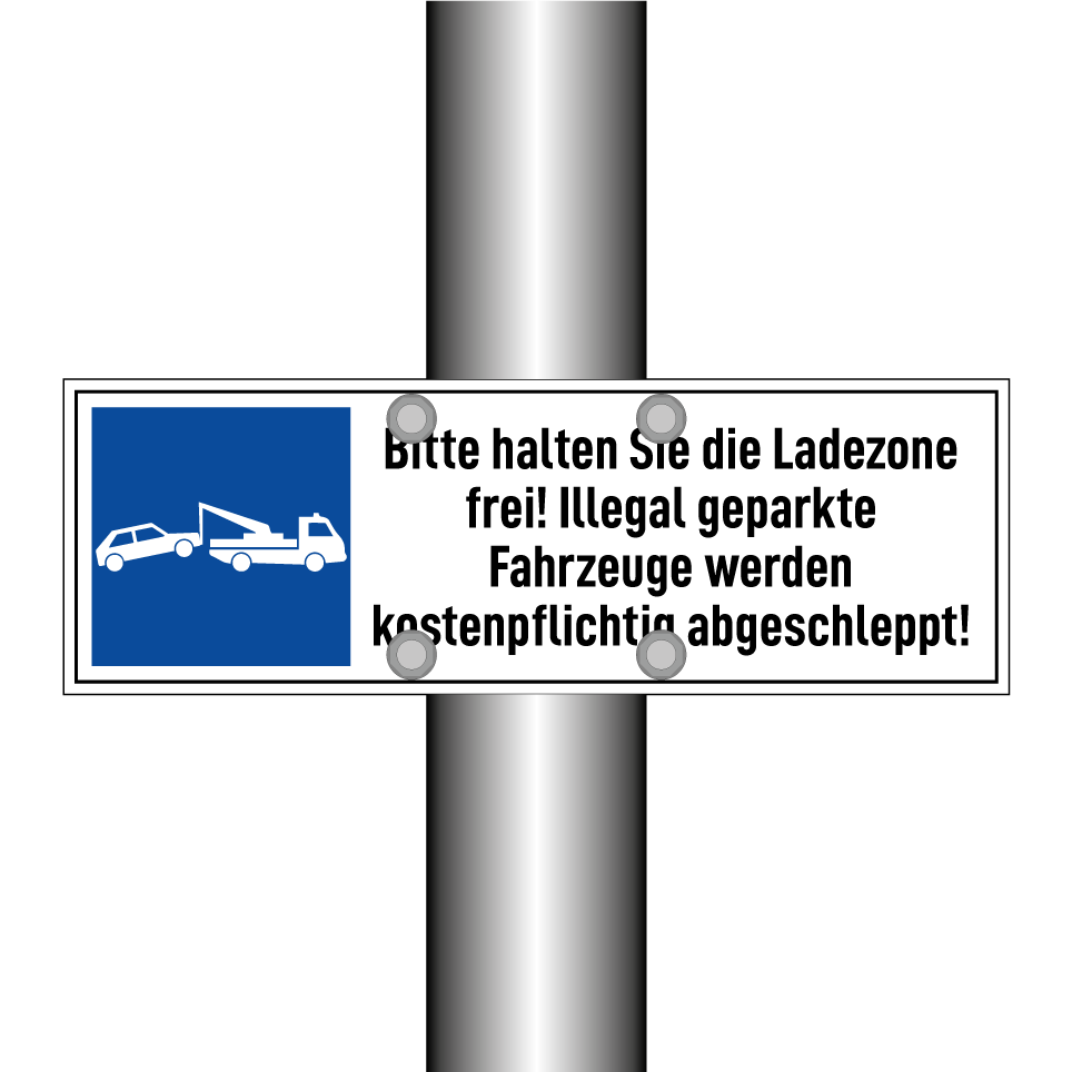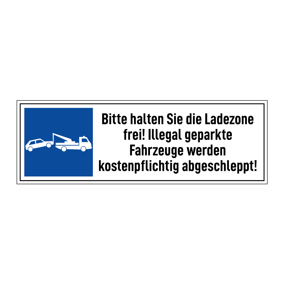 Bitte halten Sie die Ladezone frei! Illegal geparkte Fahrzeuge werden kostenpflichtig abgeschleppt!