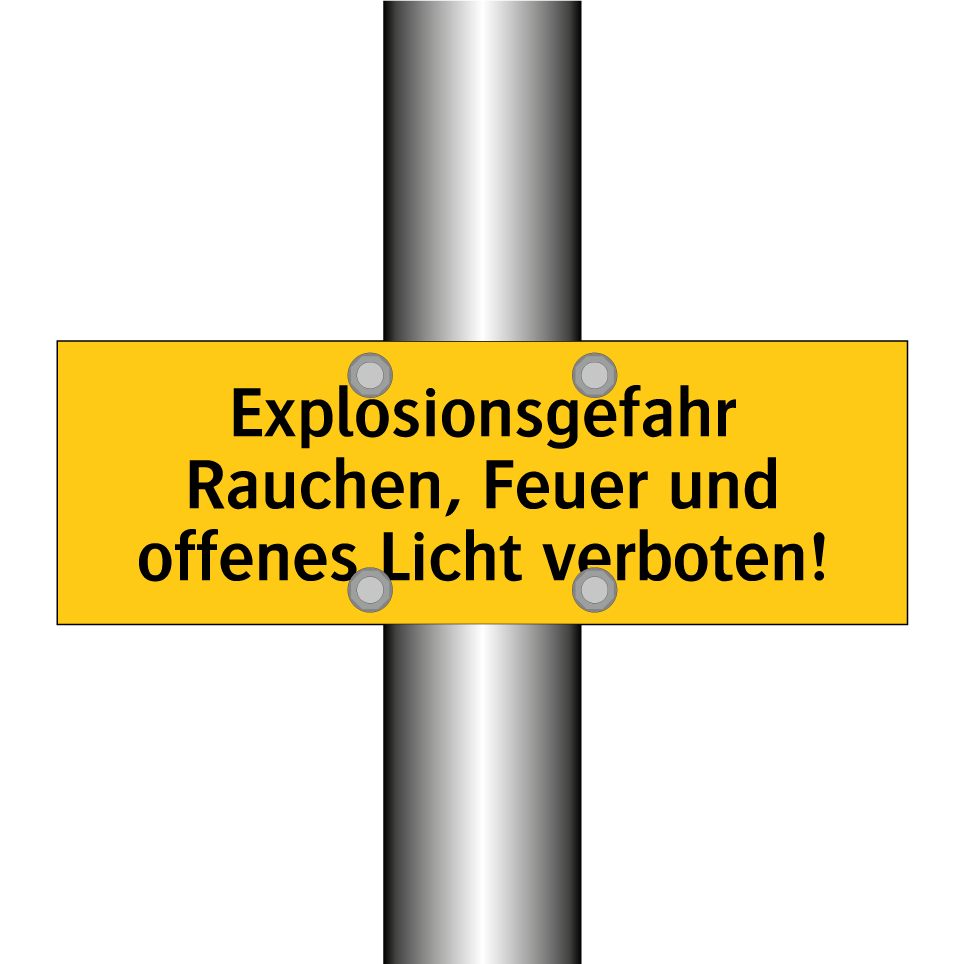 Warnschild mit dem Text Explosionsgefahr Rauchen, Feuer und offenes Licht verboten!
