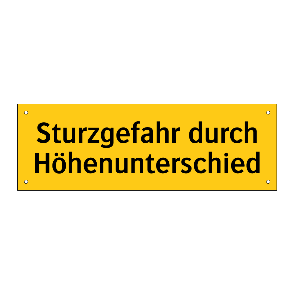 Warnschild mit dem Text Sturzgefahr durch Höhenunterschied