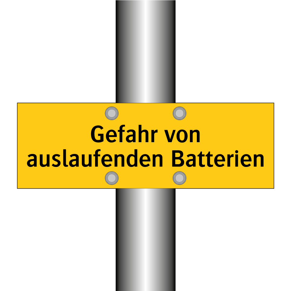 Warnschild mit dem Text Gefahr von auslaufenden Batterien
