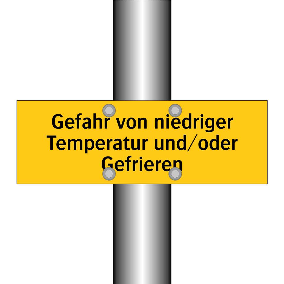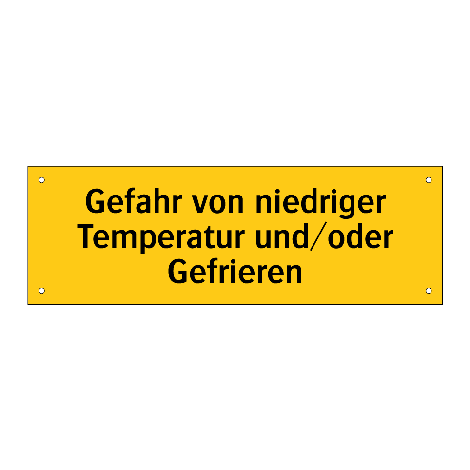 Warnschild mit dem Text Gefahr von niedriger Temperatur und/oder Gefrieren