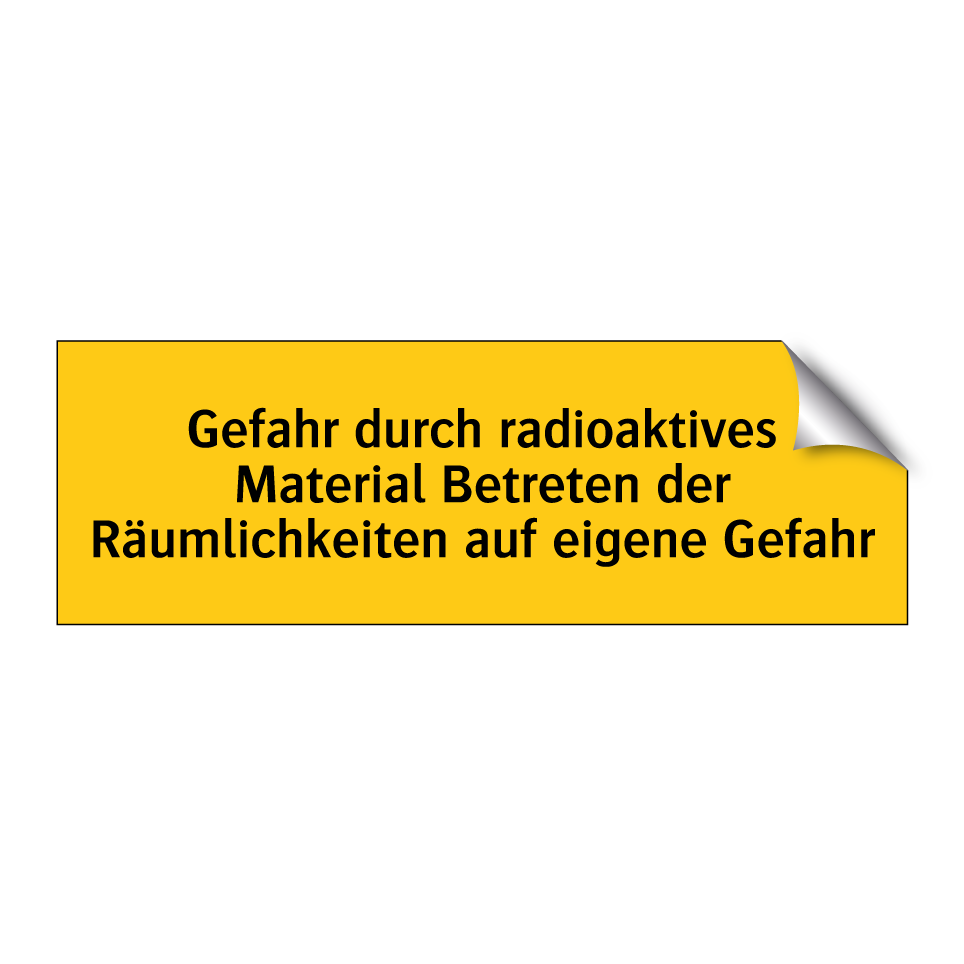 Warnschild mit dem Text Gefahr durch radioaktives Material Betreten der Räumlichkeiten auf eigene Gefahr