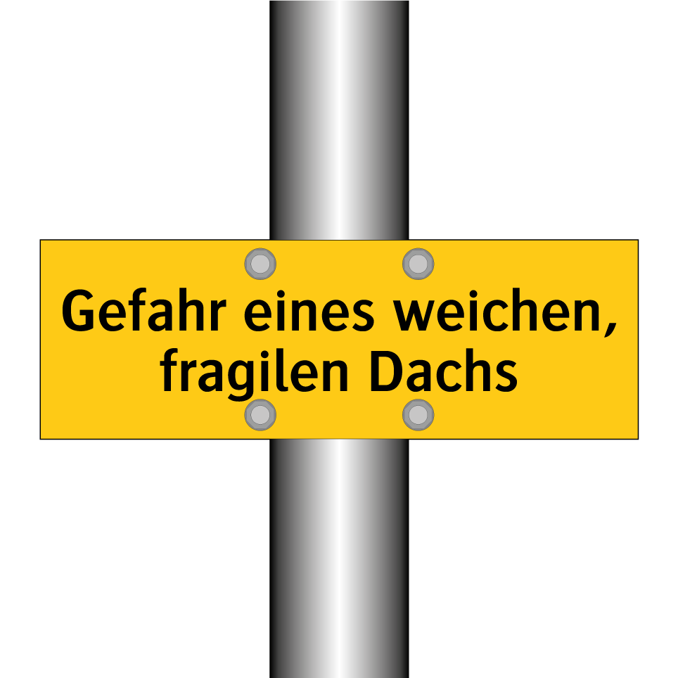 Warnschild mit dem Text Gefahr eines weichen, fragilen Dachs