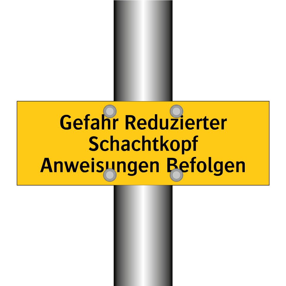 Warnschild mit dem Text Gefahr Reduzierter Schachtkopf Anweisungen Befolgen