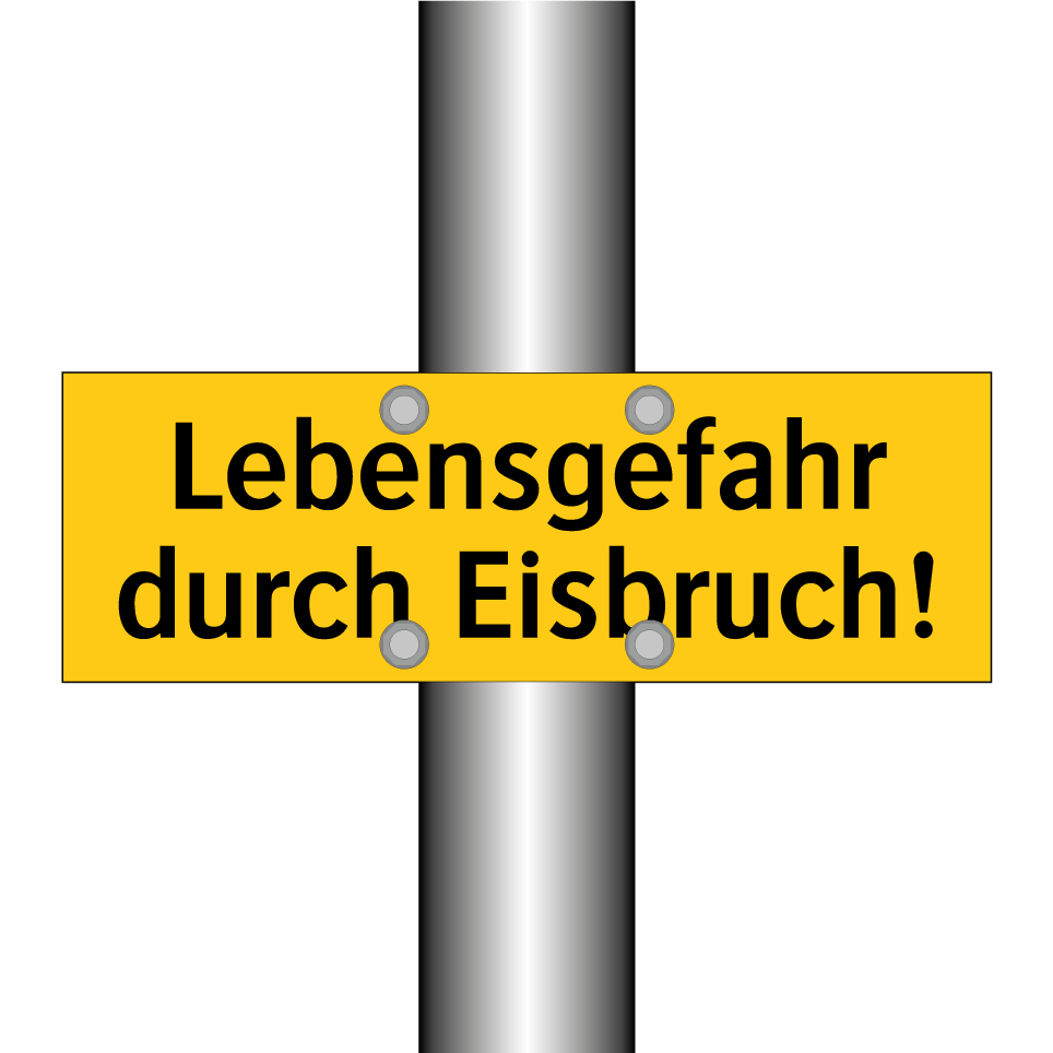 Warnschild mit dem Text Lebensgefahr durch Eisbruch!