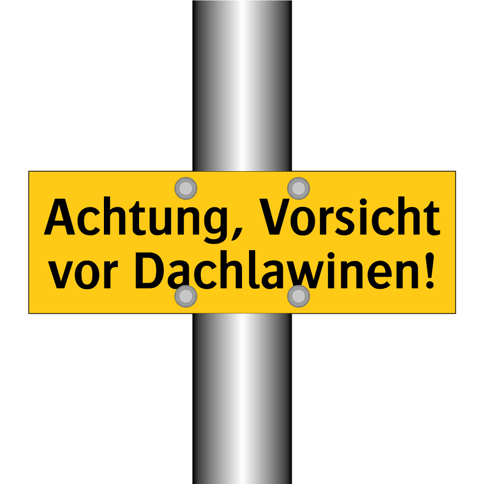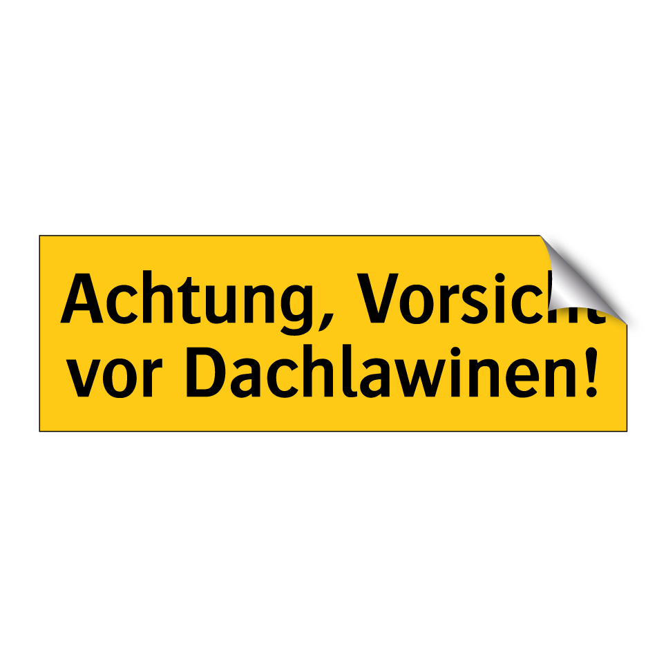 Warnschild mit dem Text Achtung, Vorsicht vor Dachlawinen!
