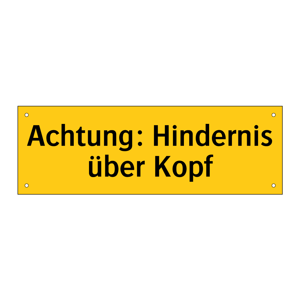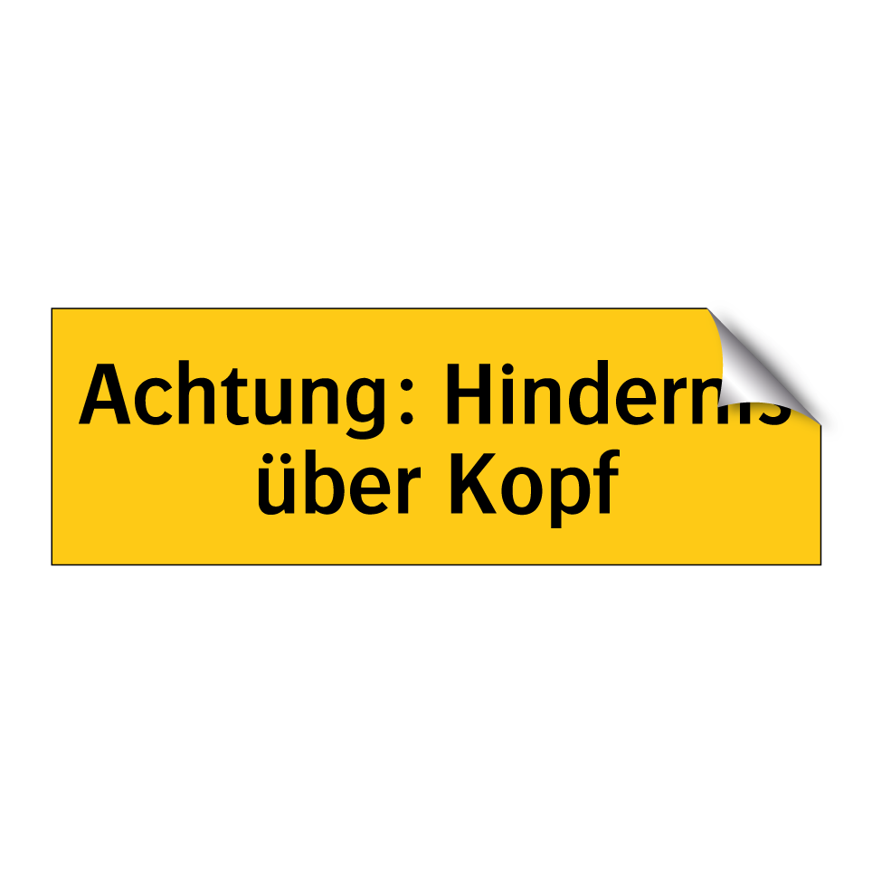 Warnschild mit dem Text Achtung: Hindernis über Kopf