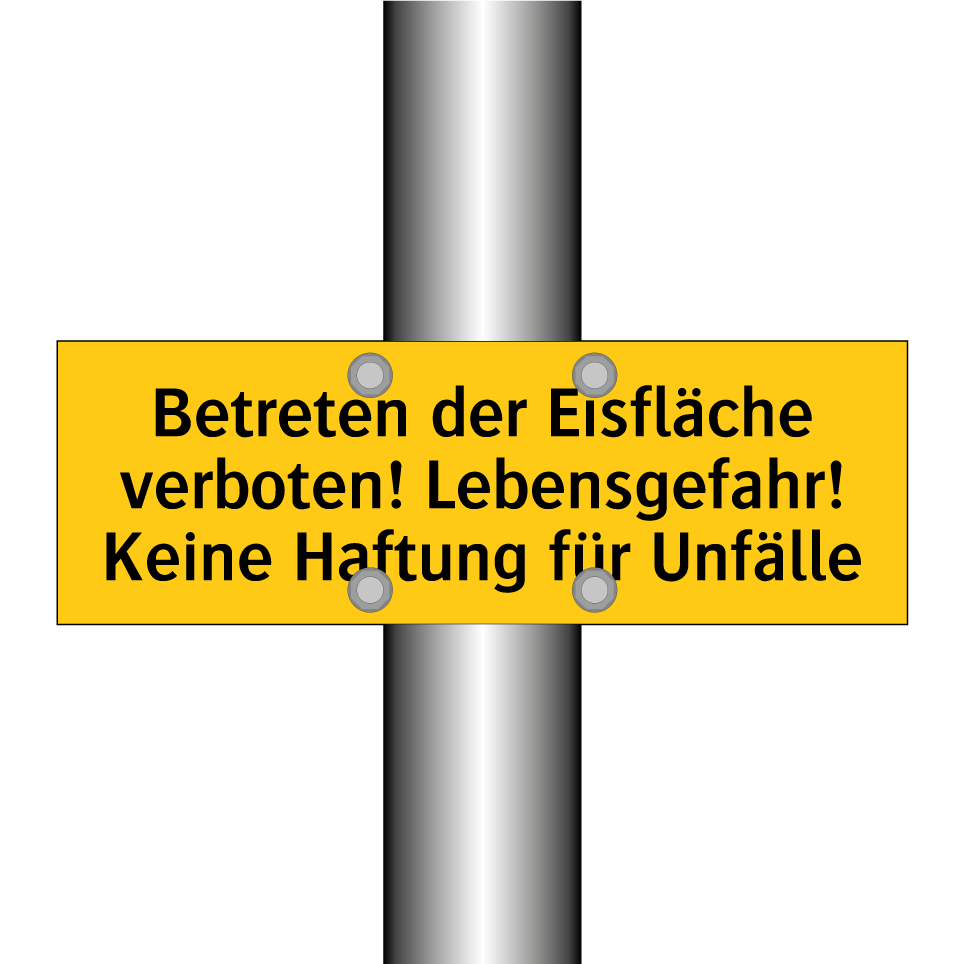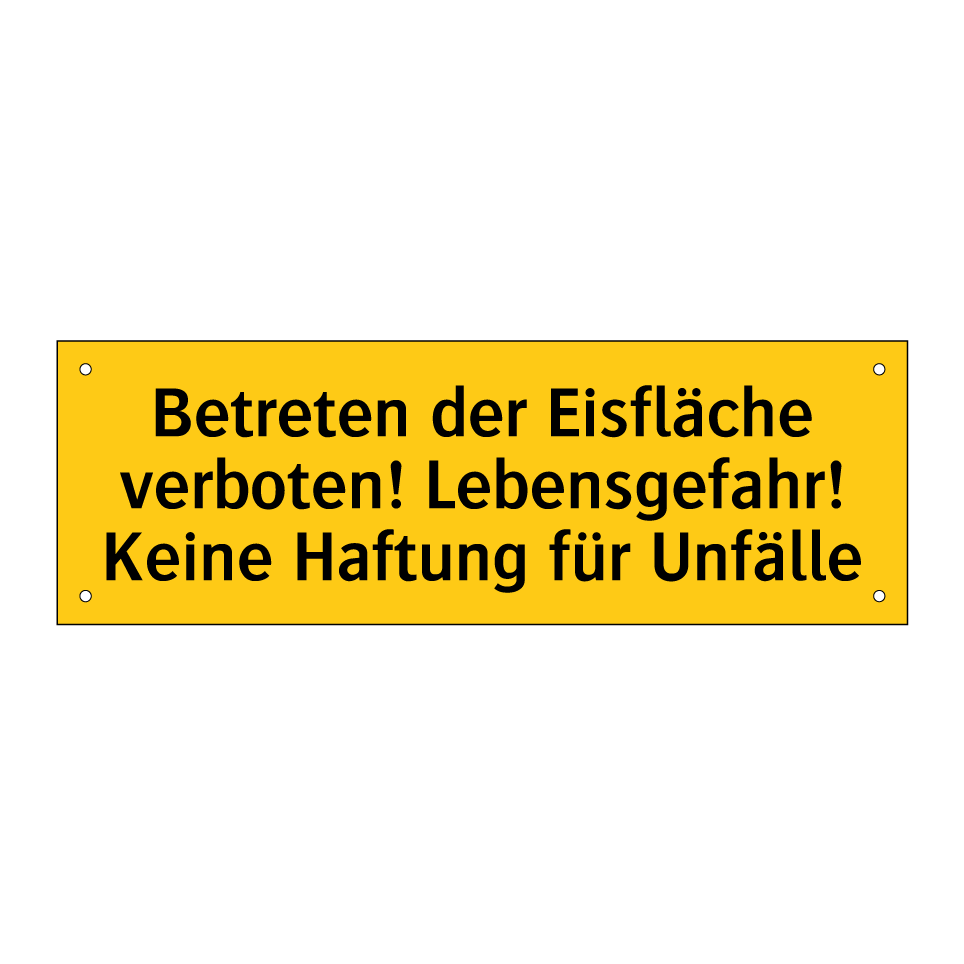 Warnschild mit dem Text Betreten der Eisfläche verboten! Lebensgefahr! Keine Haftung für Unfälle