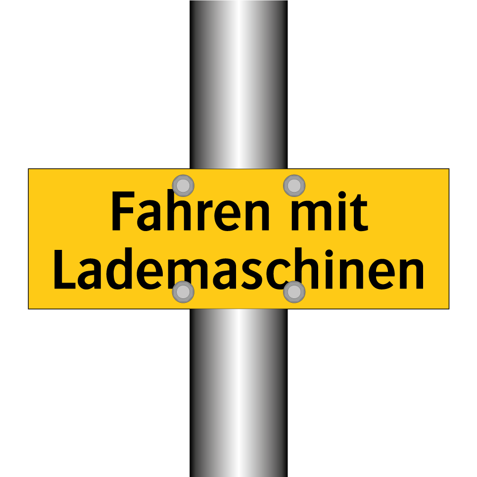 Warnschild mit dem Text Fahren mit Lademaschinen