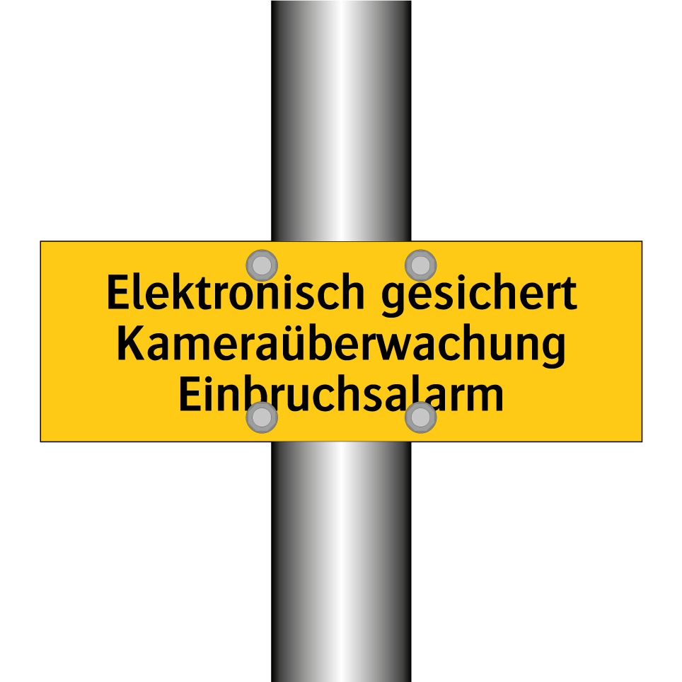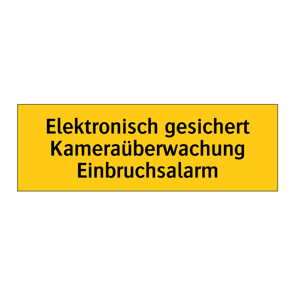 Warnschild mit dem Text Elektronisch gesichert Kameraüberwachung Einbruchsalarm