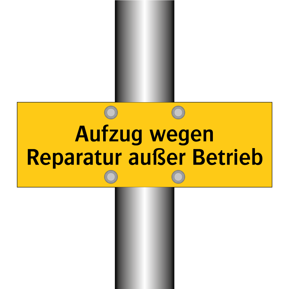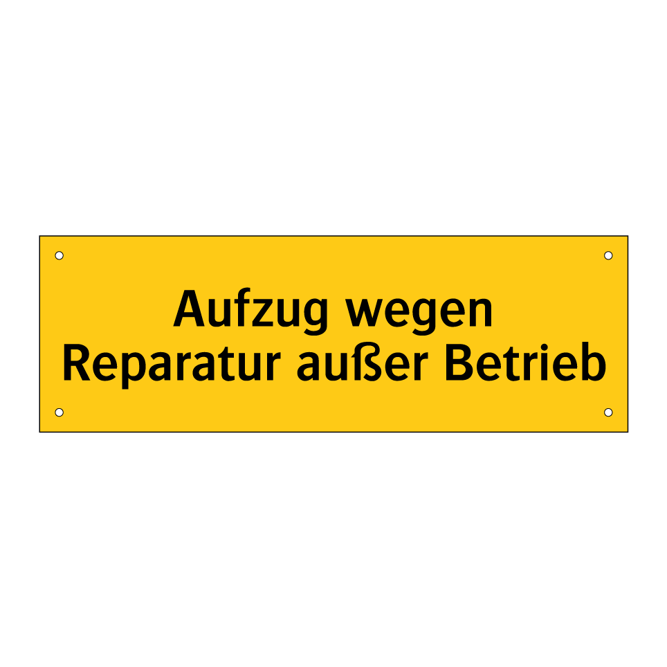 Warnschild mit dem Text Aufzug wegen Reparatur außer Betrieb