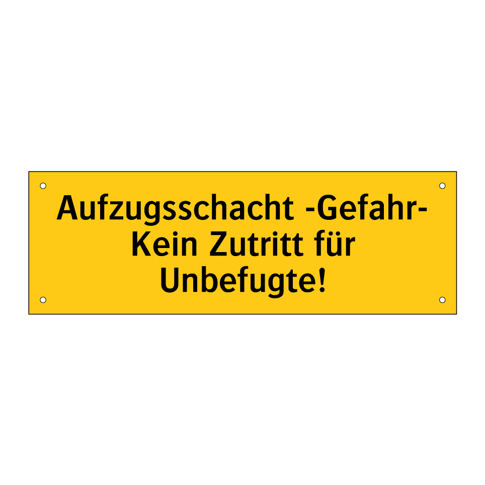 Warnschild mit dem Text Aufzugsschacht -Gefahr- Kein Zutritt für Unbefugte!
