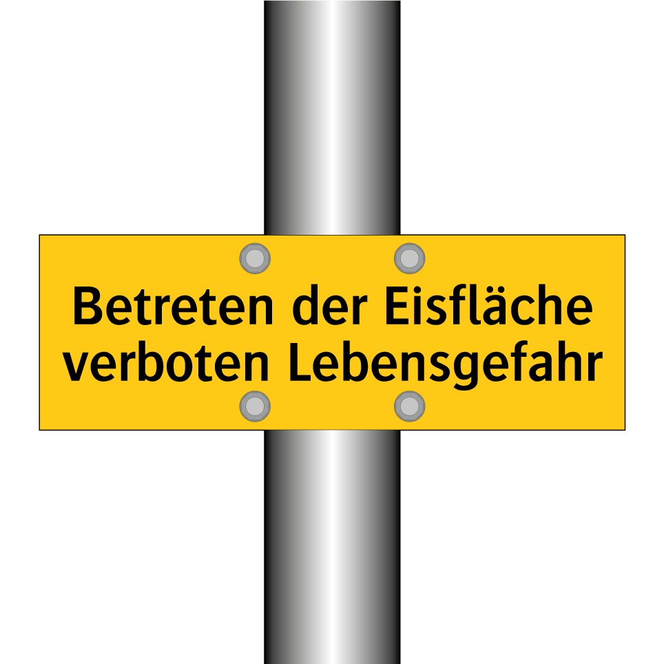 Warnschild mit dem Text Betreten der Eisfläche verboten Lebensgefahr