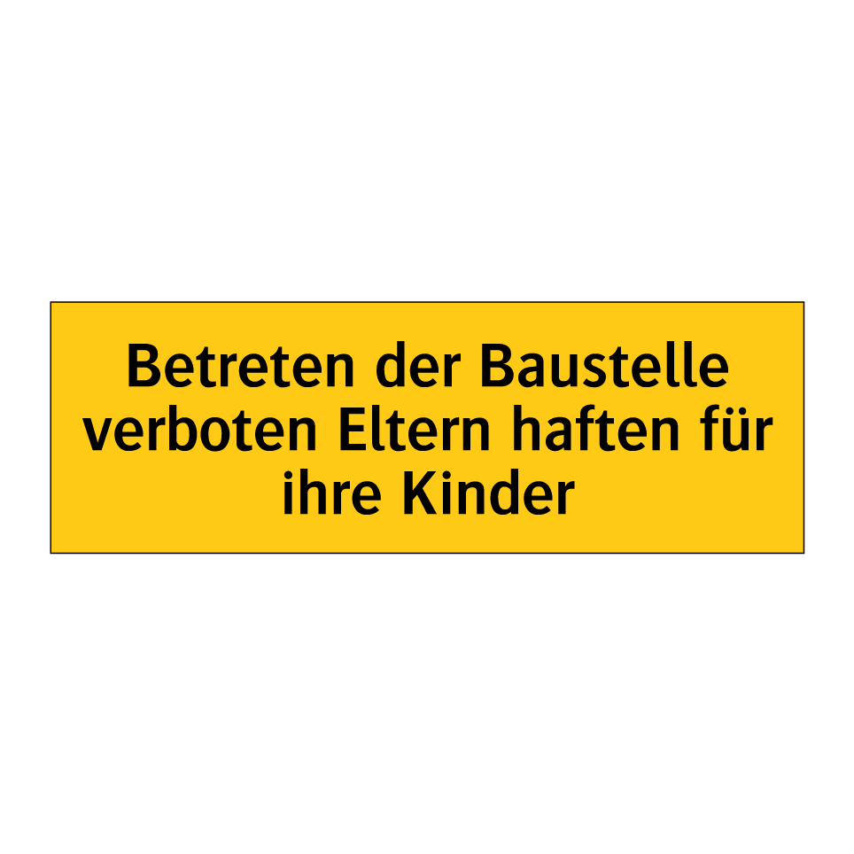 Warnschild mit dem Text Betreten der Baustelle verboten Eltern haften für ihre Kinder