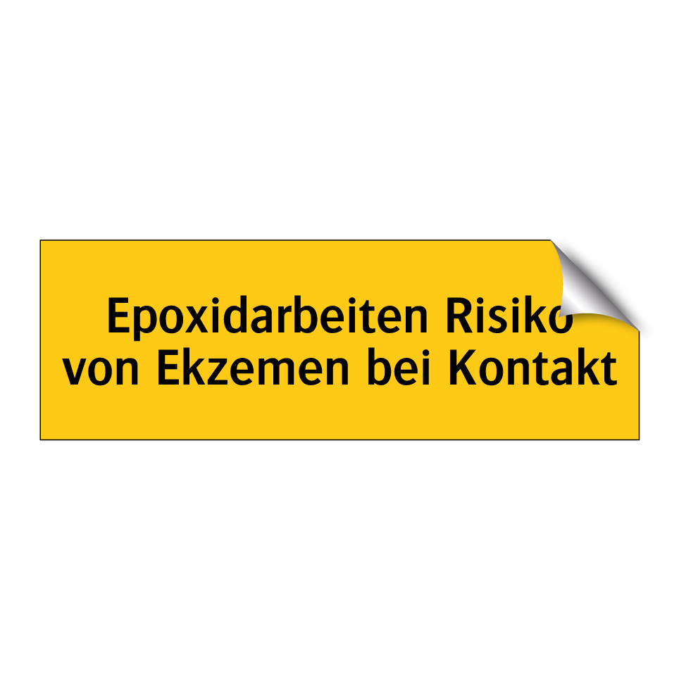 Warnschild mit dem Text Epoxidarbeiten Risiko von Ekzemen bei Kontakt