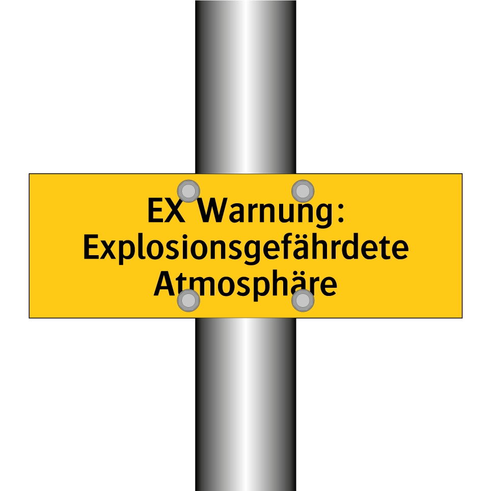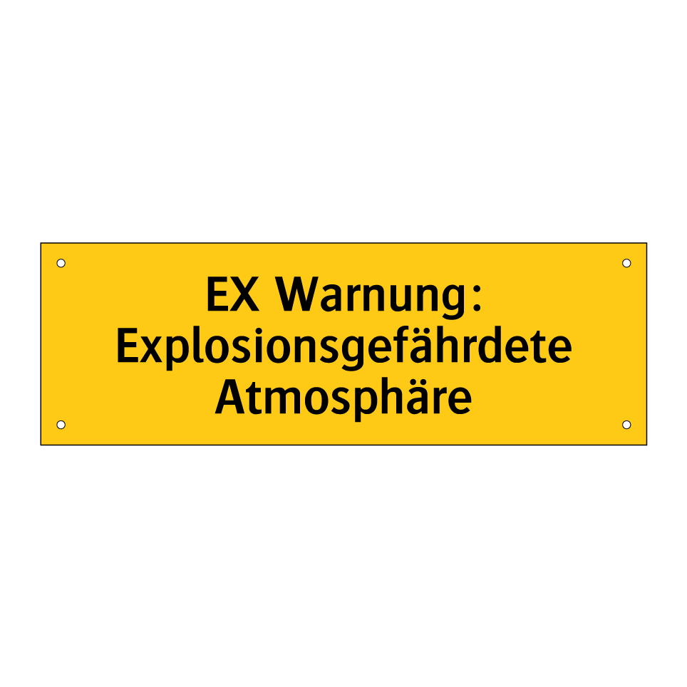 Warnschild mit dem Text EX Warnung: Explosionsgefährdete Atmosphäre