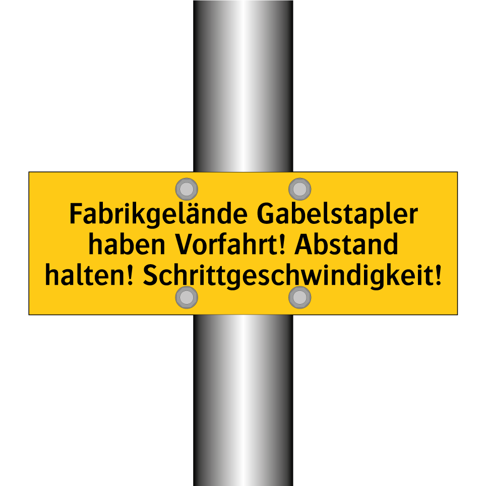 Warnschild mit dem Text Fabrikgelände Gabelstapler haben Vorfahrt! Abstand halten! Schrittgeschwindigkeit!