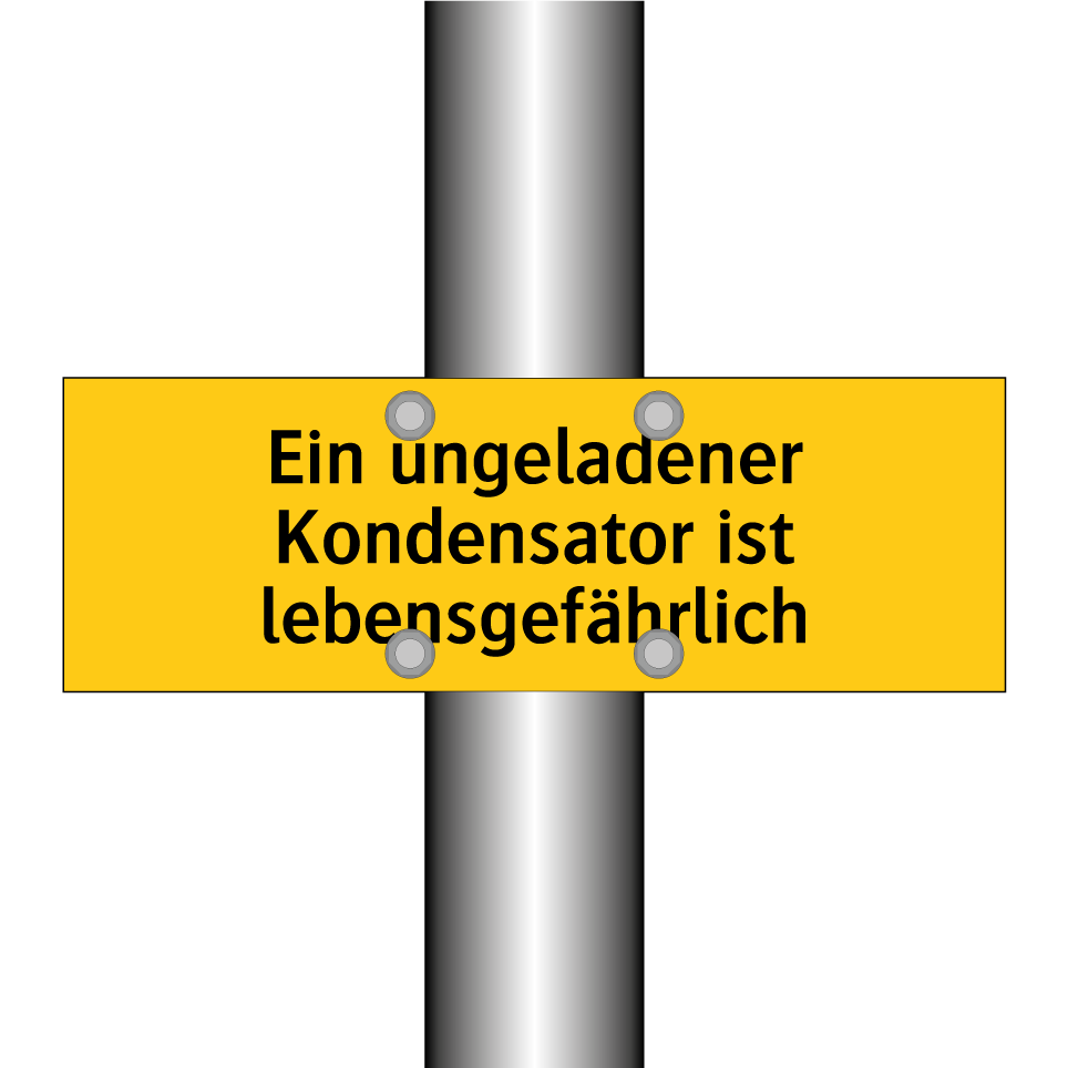 Warnschild mit dem Text Ein ungeladener Kondensator ist lebensgefährlich