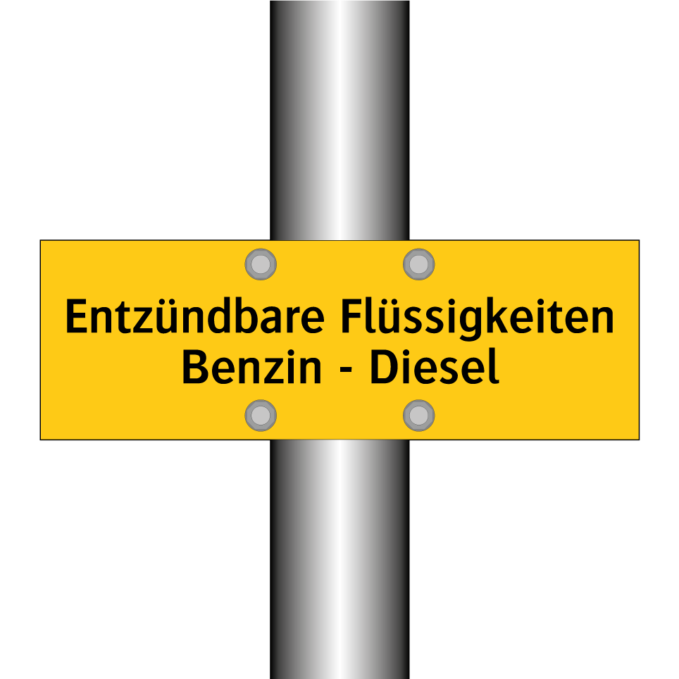 Warnschild mit dem Text Entzündbare Flüssigkeiten Benzin - Diesel