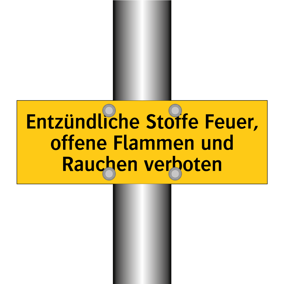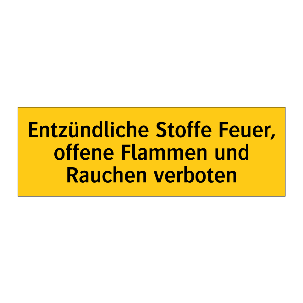 Warnschild mit dem Text Entzündliche Stoffe Feuer, offene Flammen und Rauchen verboten