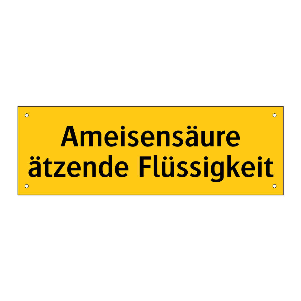 Warnschild mit dem Text Ameisensäure ätzende Flüssigkeit