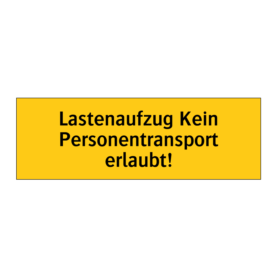 Diese auffällige Warnschild mit gelbem Hintergrund und schwarzer Schrift ist ideal für den Einsatz in Bereichen, in denen Lastenaufzüge betrieben werden. Sie dient dazu, Personen darauf hinzuweisen, dass der Aufzug ausschließlich für den Transport von Gütern vorgesehen ist und nicht für den Personentransport genutzt werden darf. Platzieren Sie diese Warnschilder an gut sichtbaren Stellen in der Nähe von Lastenaufzügen, um die Sicherheit zu gewährleisten und Unfälle zu vermeiden. Besonders geeignet für Lagerhäuser, Fabriken und andere industrielle Umgebungen, wo der sichere Betrieb von Lastenaufzügen von größter Bedeutung ist. Diese Warnung trägt dazu bei, die Einhaltung von Sicherheitsvorschriften zu unterstützen.
