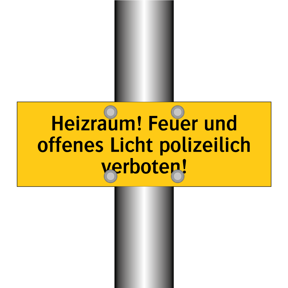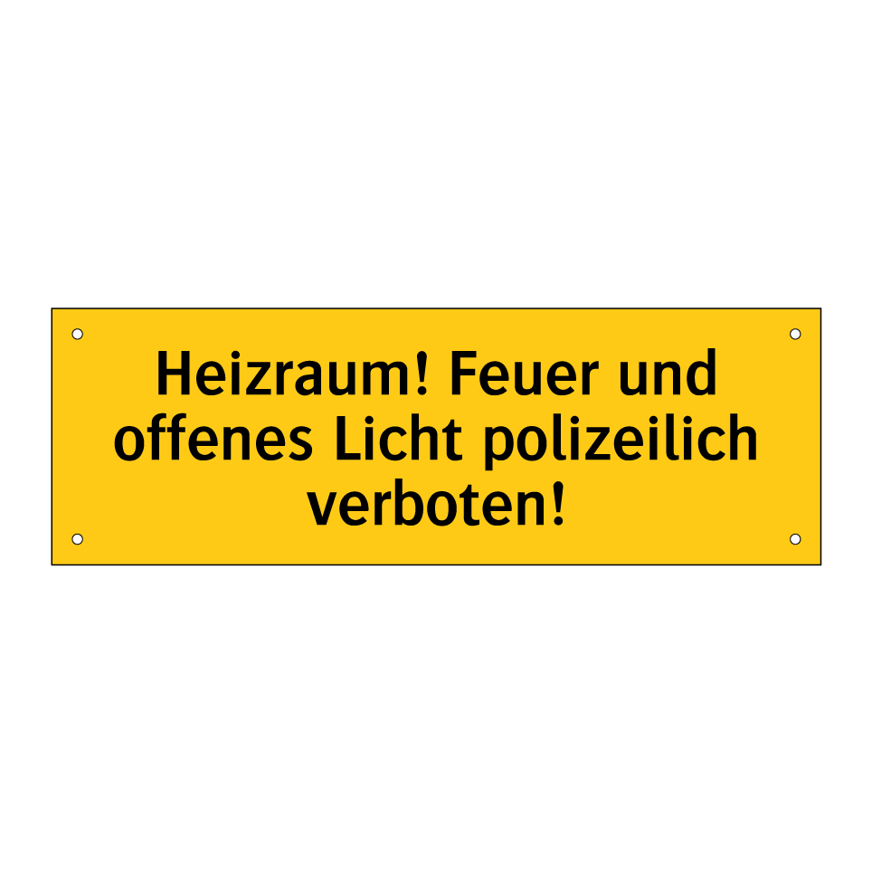 Warnschild mit dem Text Heizraum! Feuer und offenes Licht polizeilich verboten!