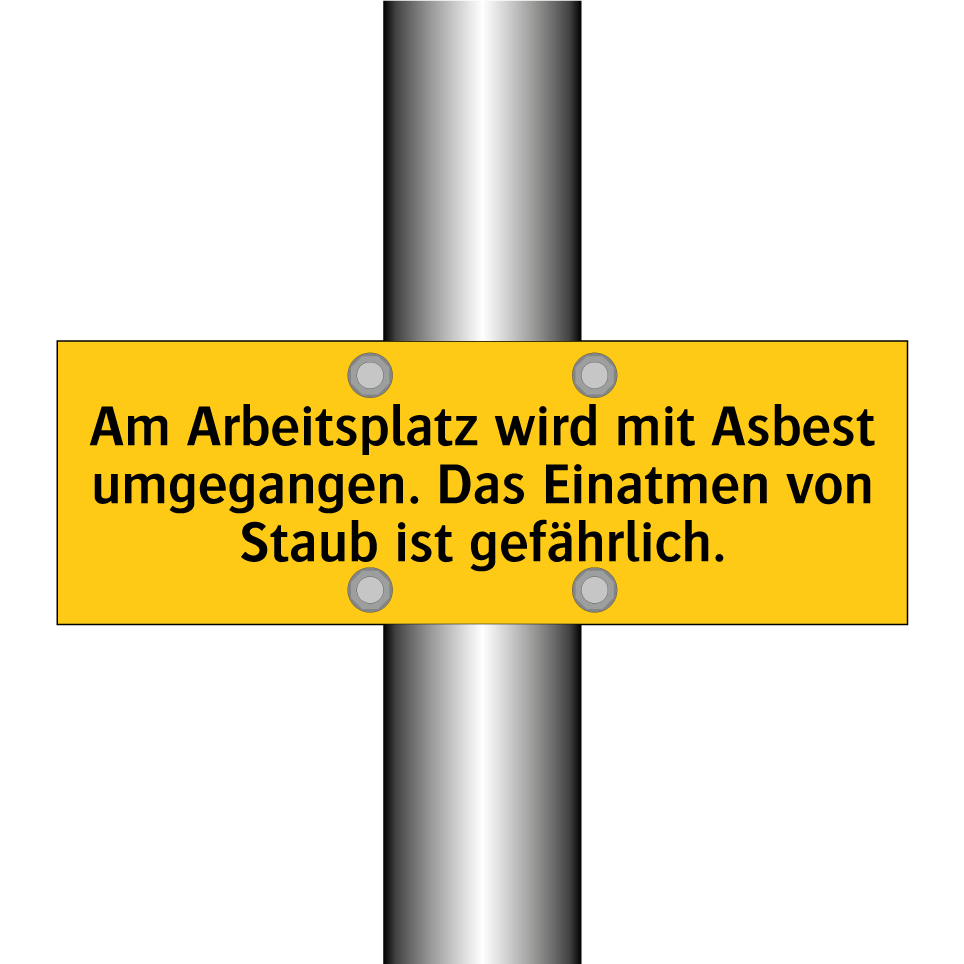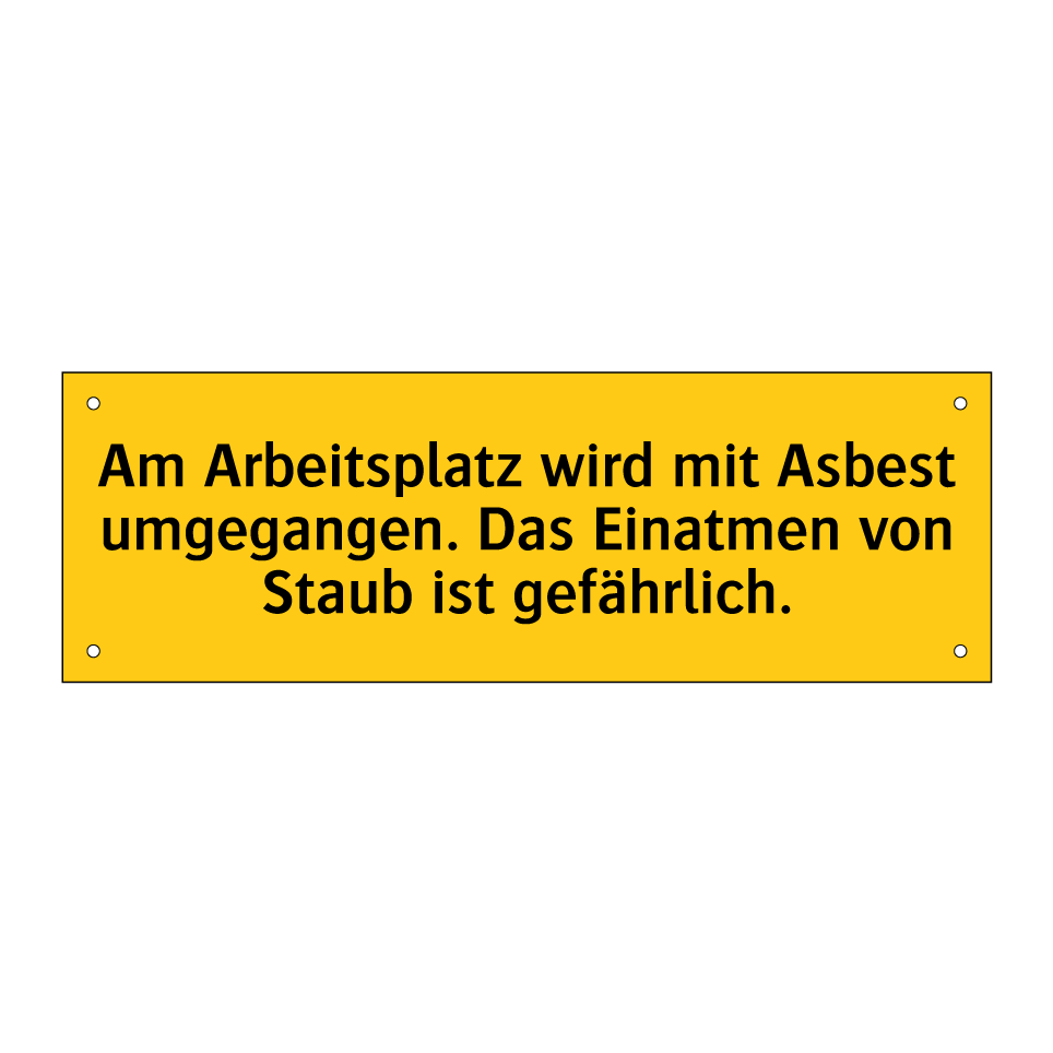 Warnschild mit dem Text Am Arbeitsplatz wird mit Asbest umgegangen. Das Einatmen von Staub ist gefährlich.