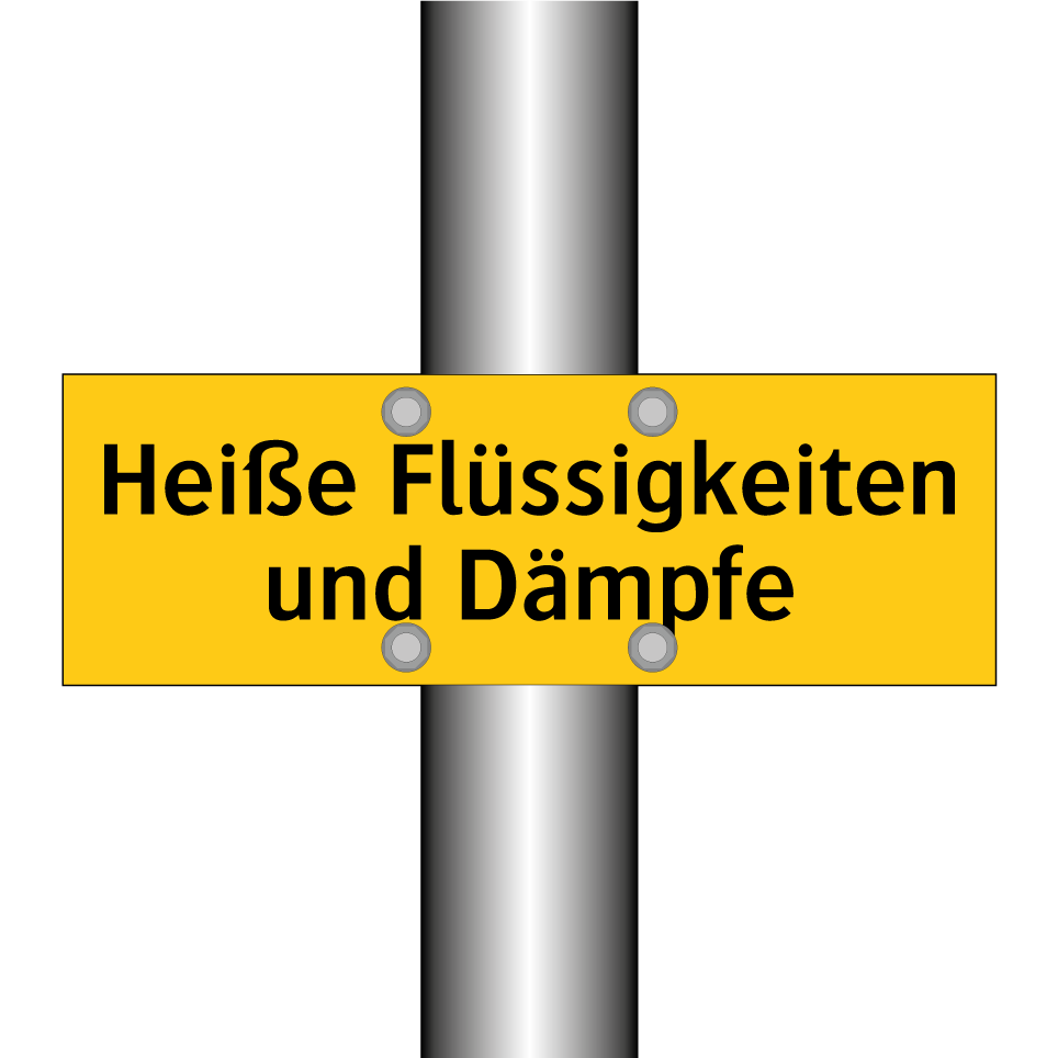 Warnschild mit dem Text Heiße Flüssigkeiten und Dämpfe