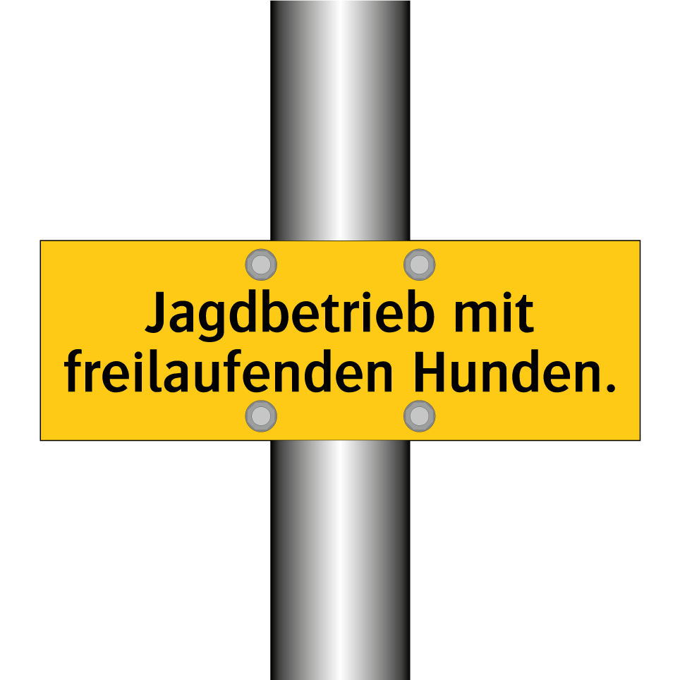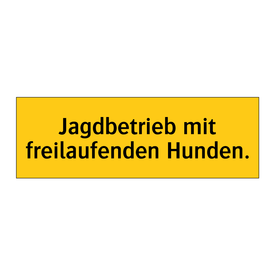 Warnschild mit dem Text Jagdbetrieb mit freilaufenden Hunden.