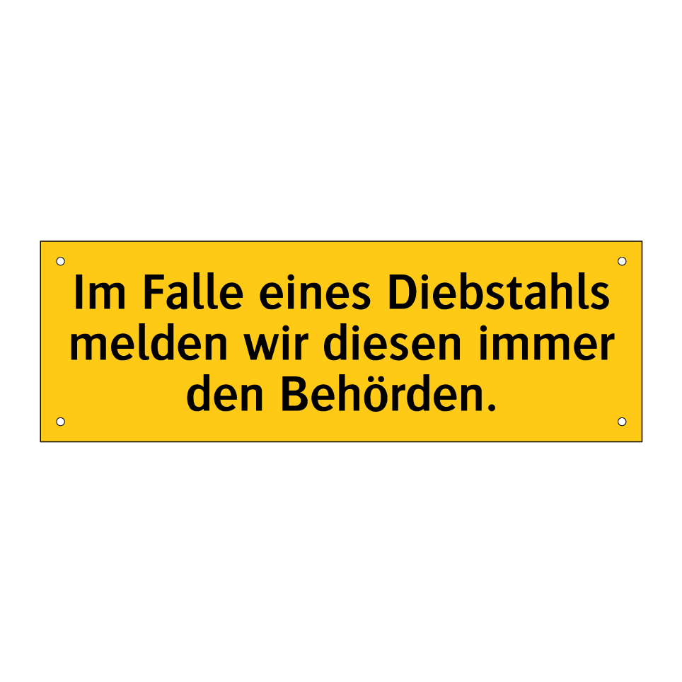 Warnschild mit dem Text Im Falle eines Diebstahls melden wir diesen immer den Behörden.