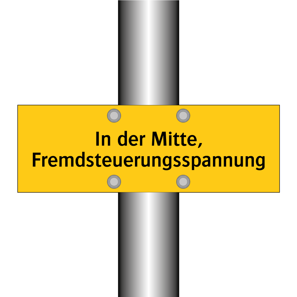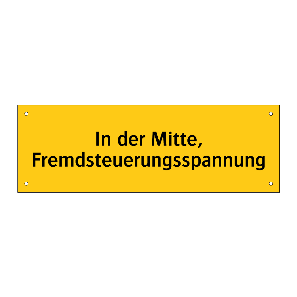 Warnschild mit dem Text In der Mitte, Fremdsteuerungsspannung