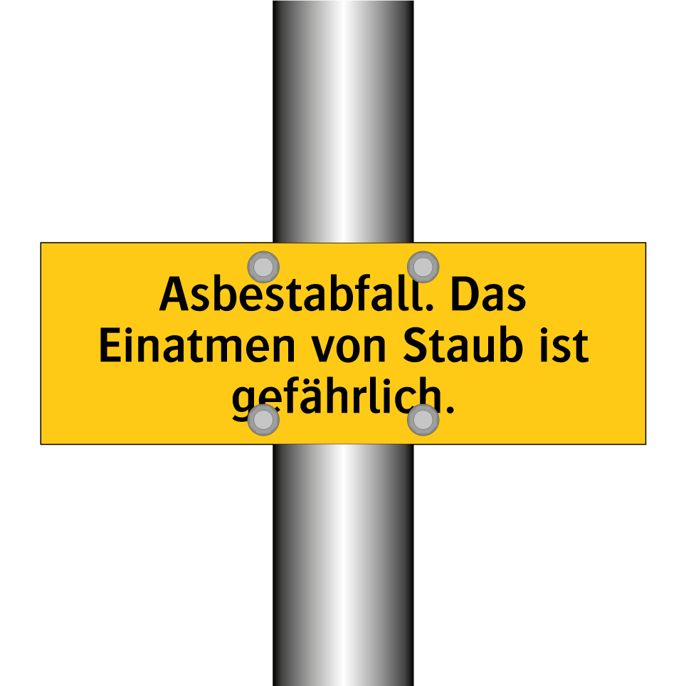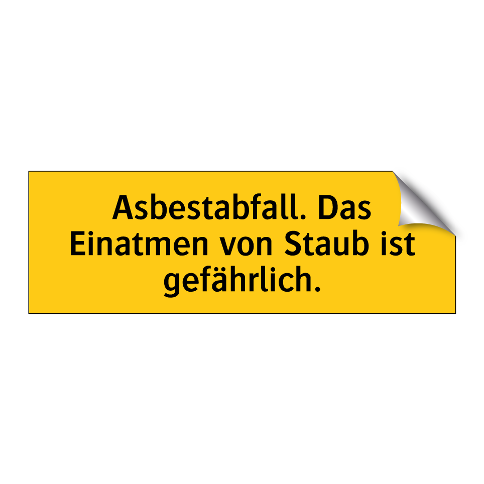 Warnschild mit dem Text Asbestabfall. Das Einatmen von Staub ist gefährlich.