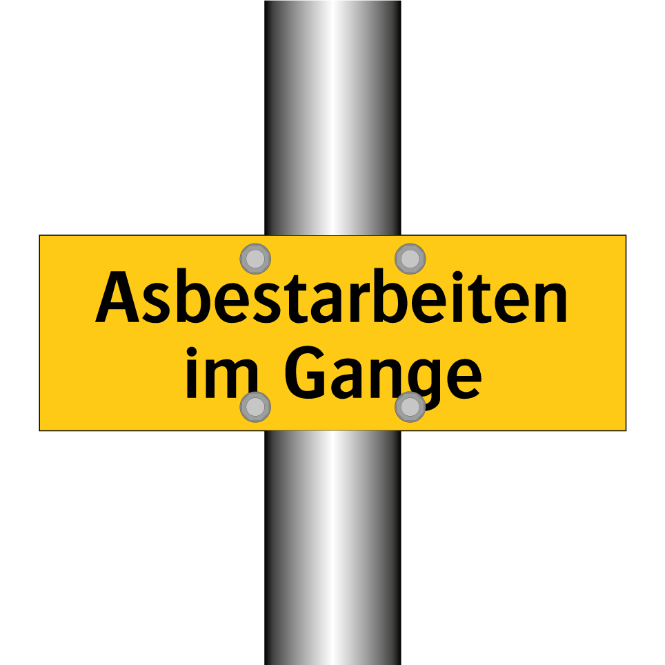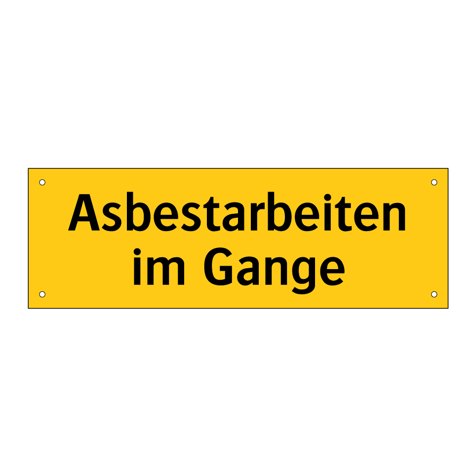 Warnschild mit dem Text Asbestarbeiten im Gange