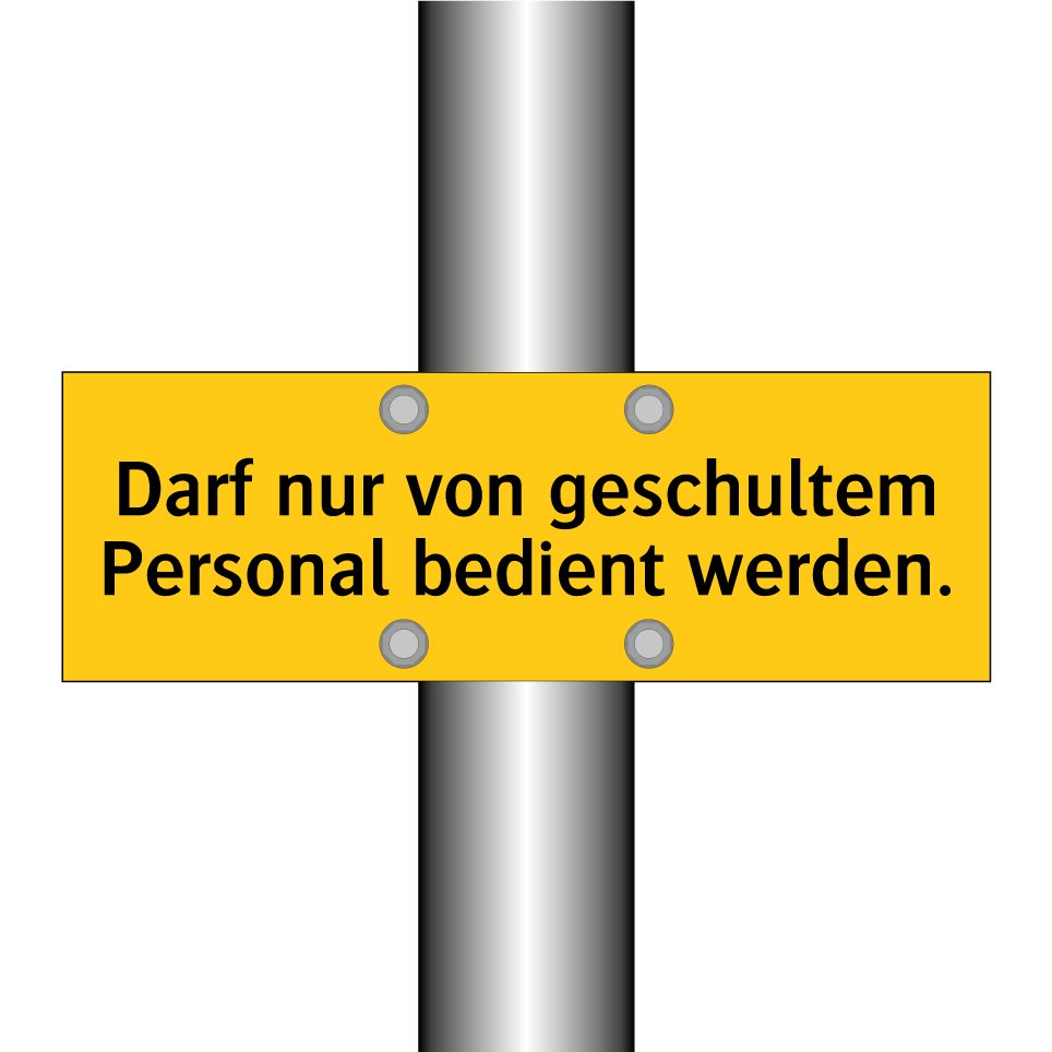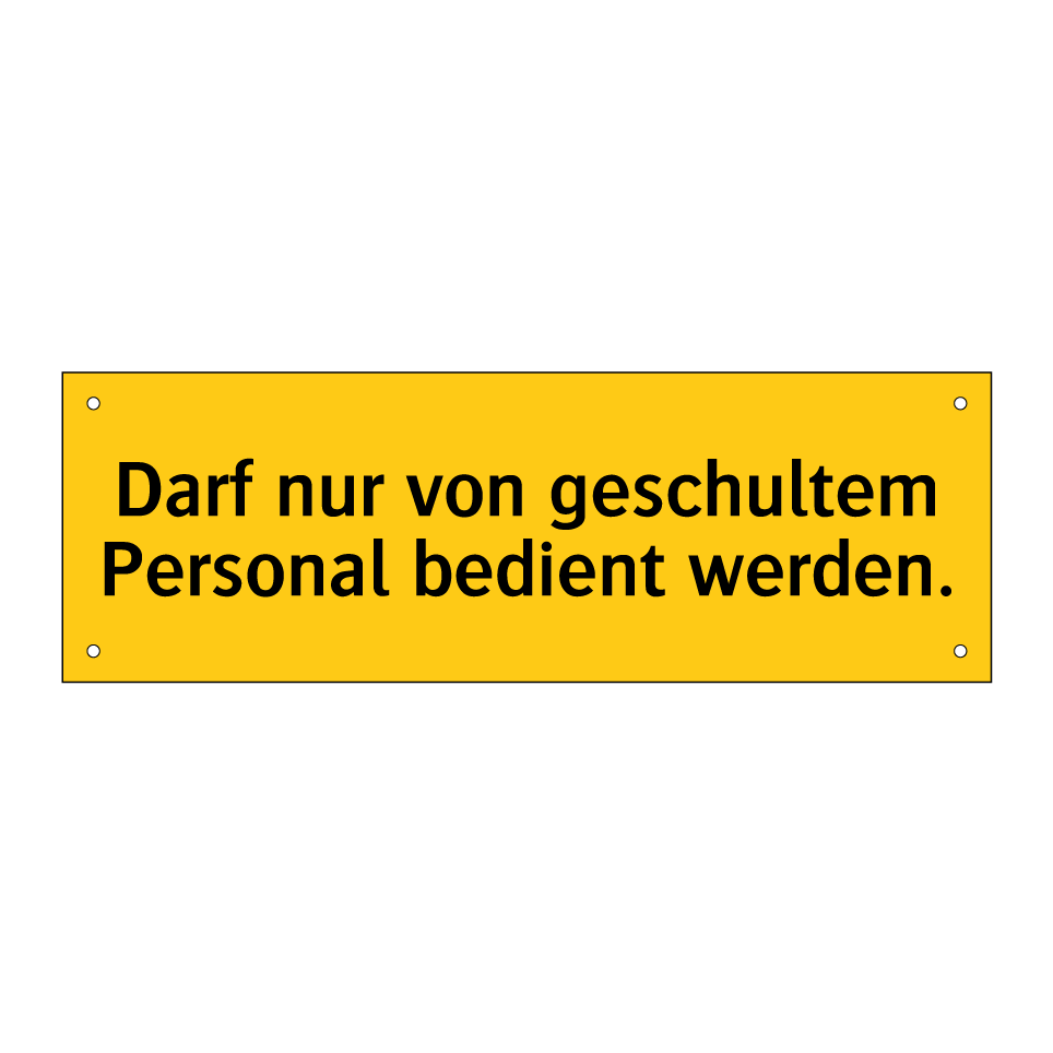 Warnschild mit dem Text Darf nur von geschultem Personal bedient werden.